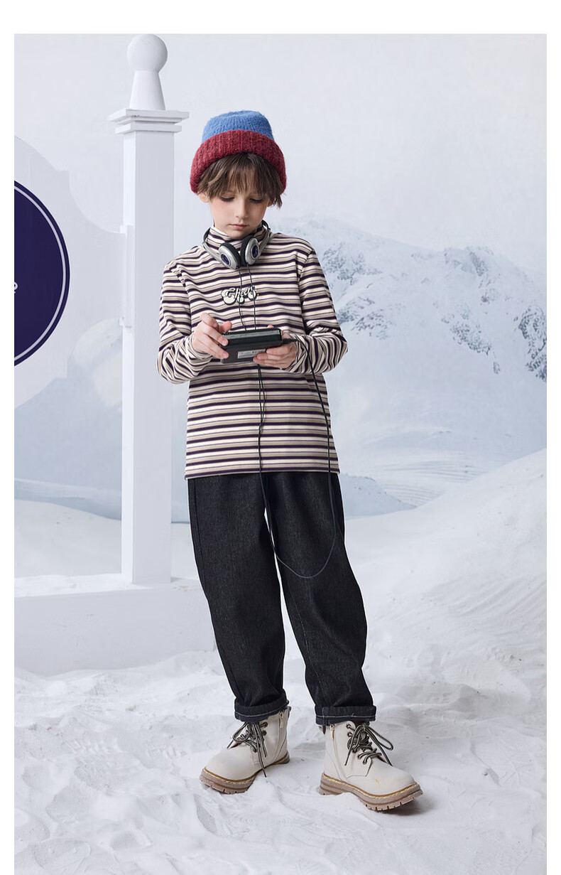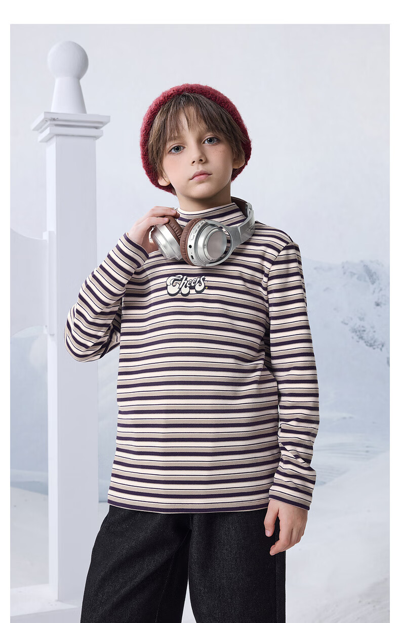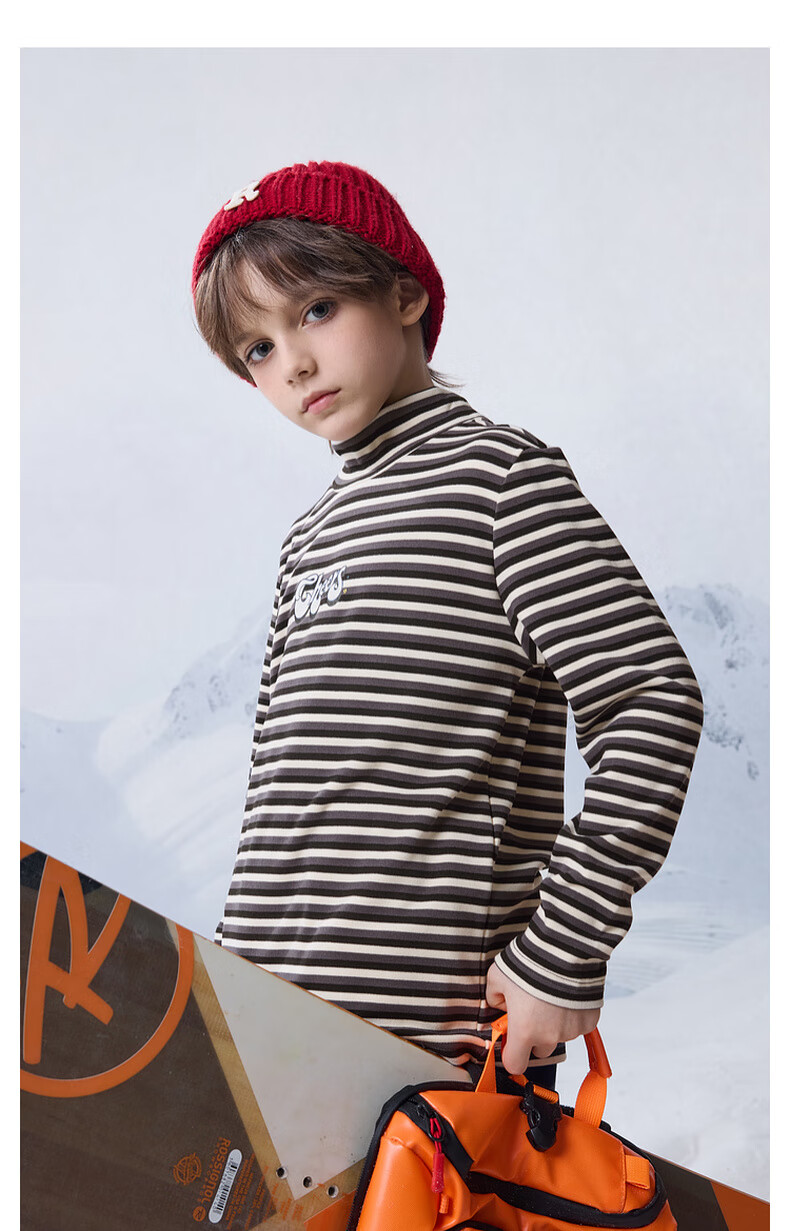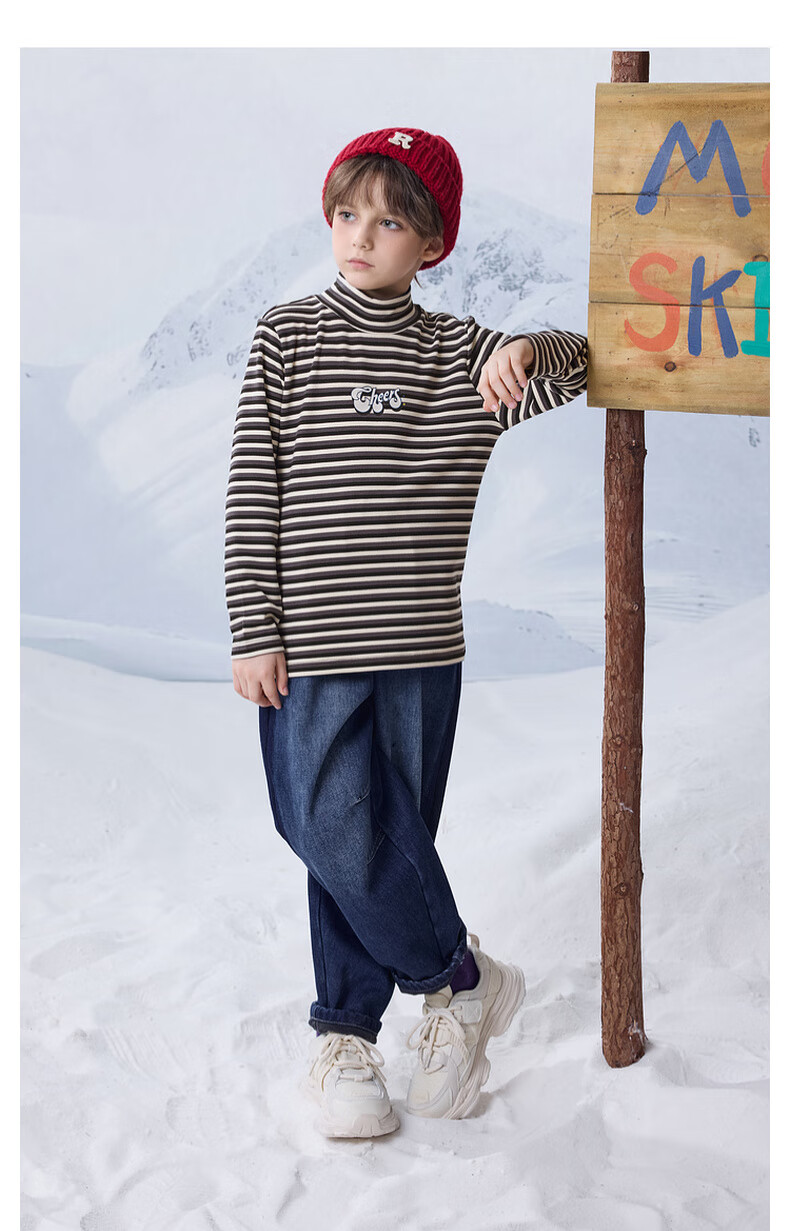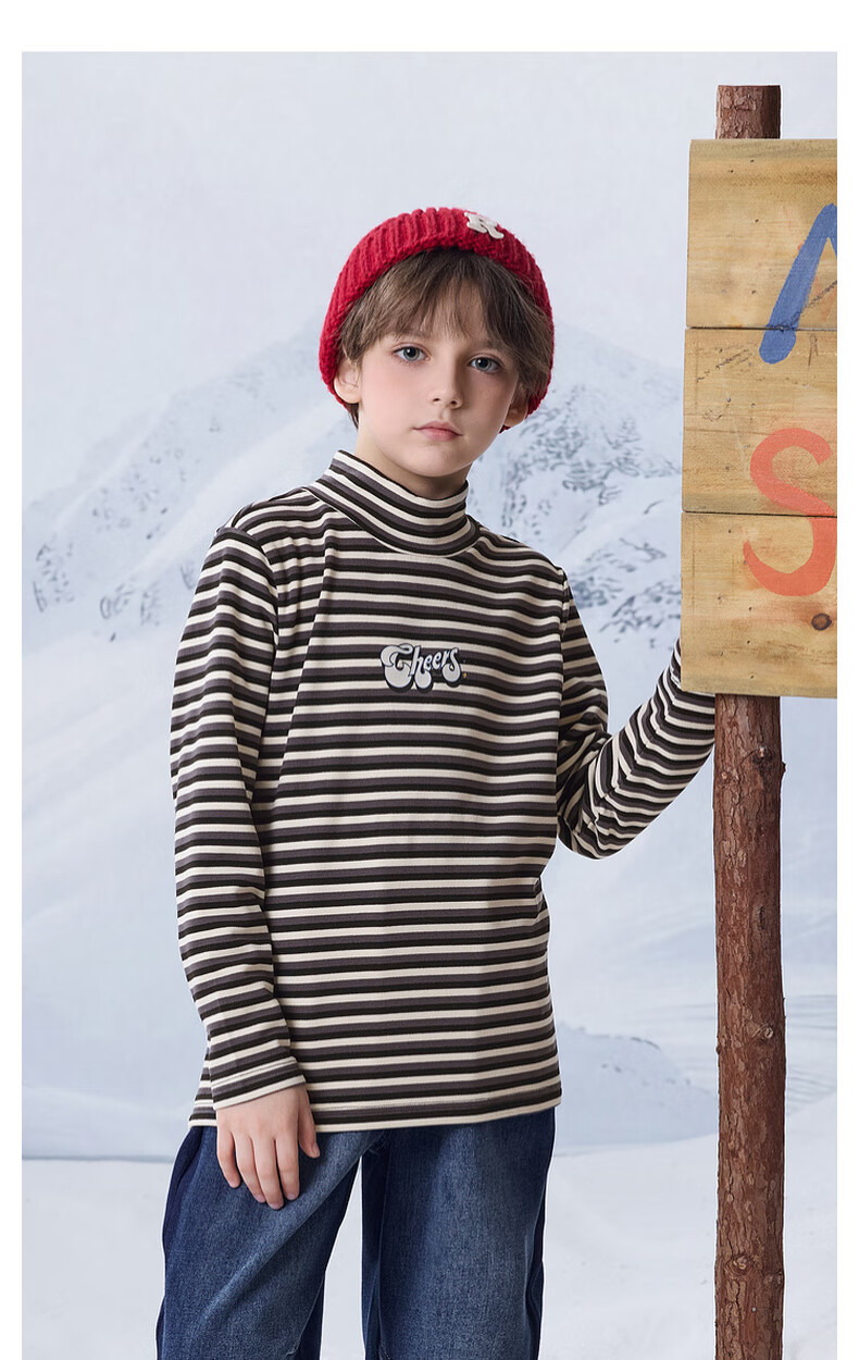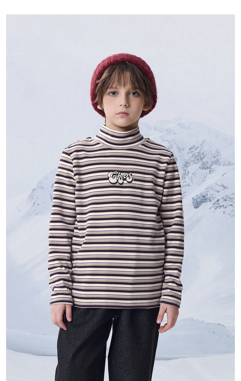 【MQD】男大童冬季经典条纹内搭长袖半高领T恤