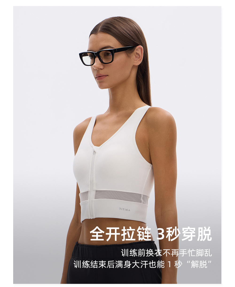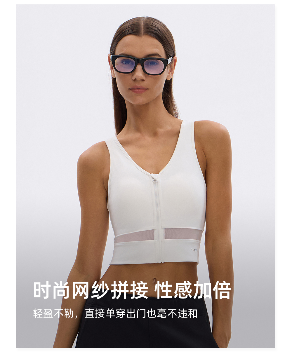 TITIKA云速全开拉链运动背心带胸垫时尚瑜伽背心跑步健身上衣11230