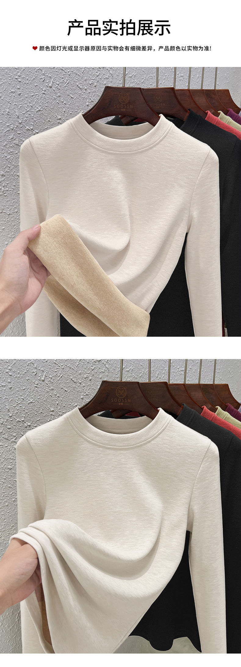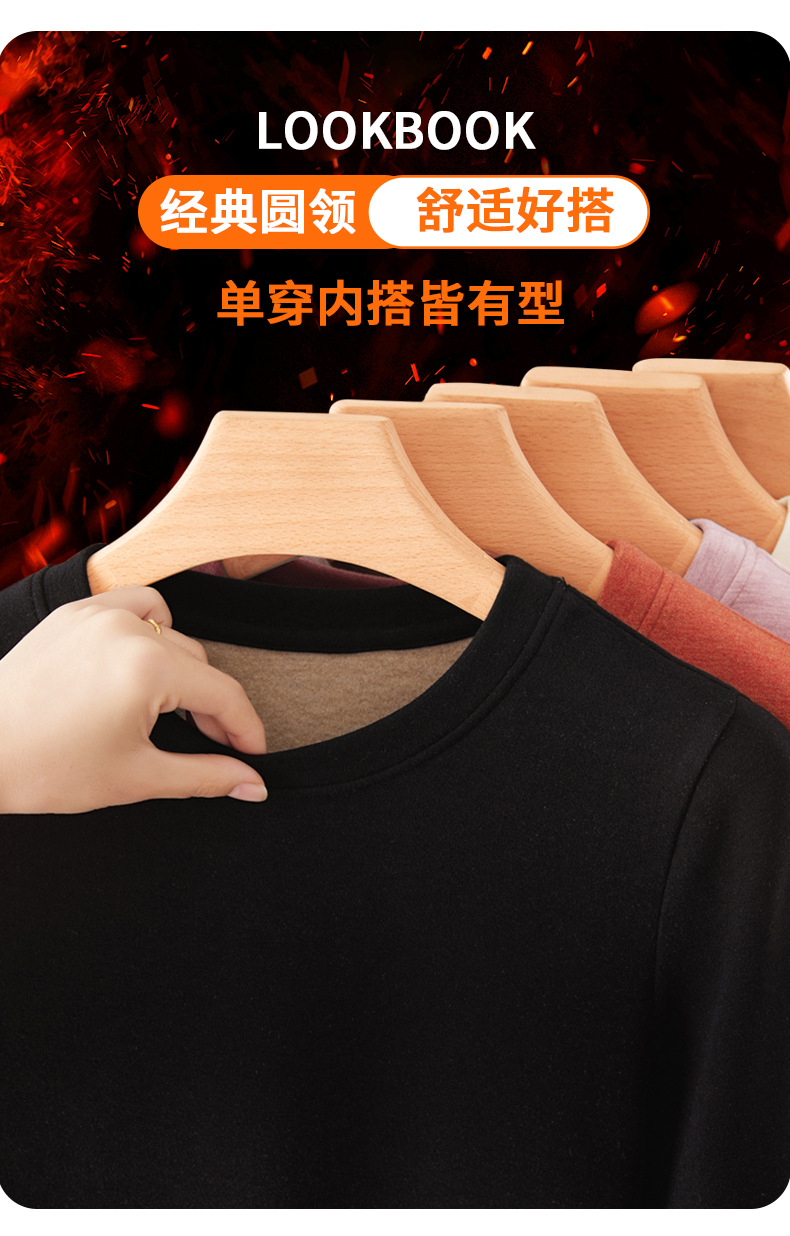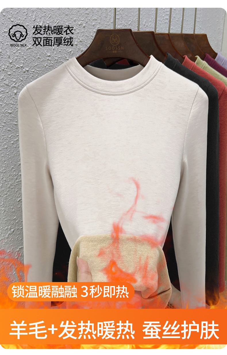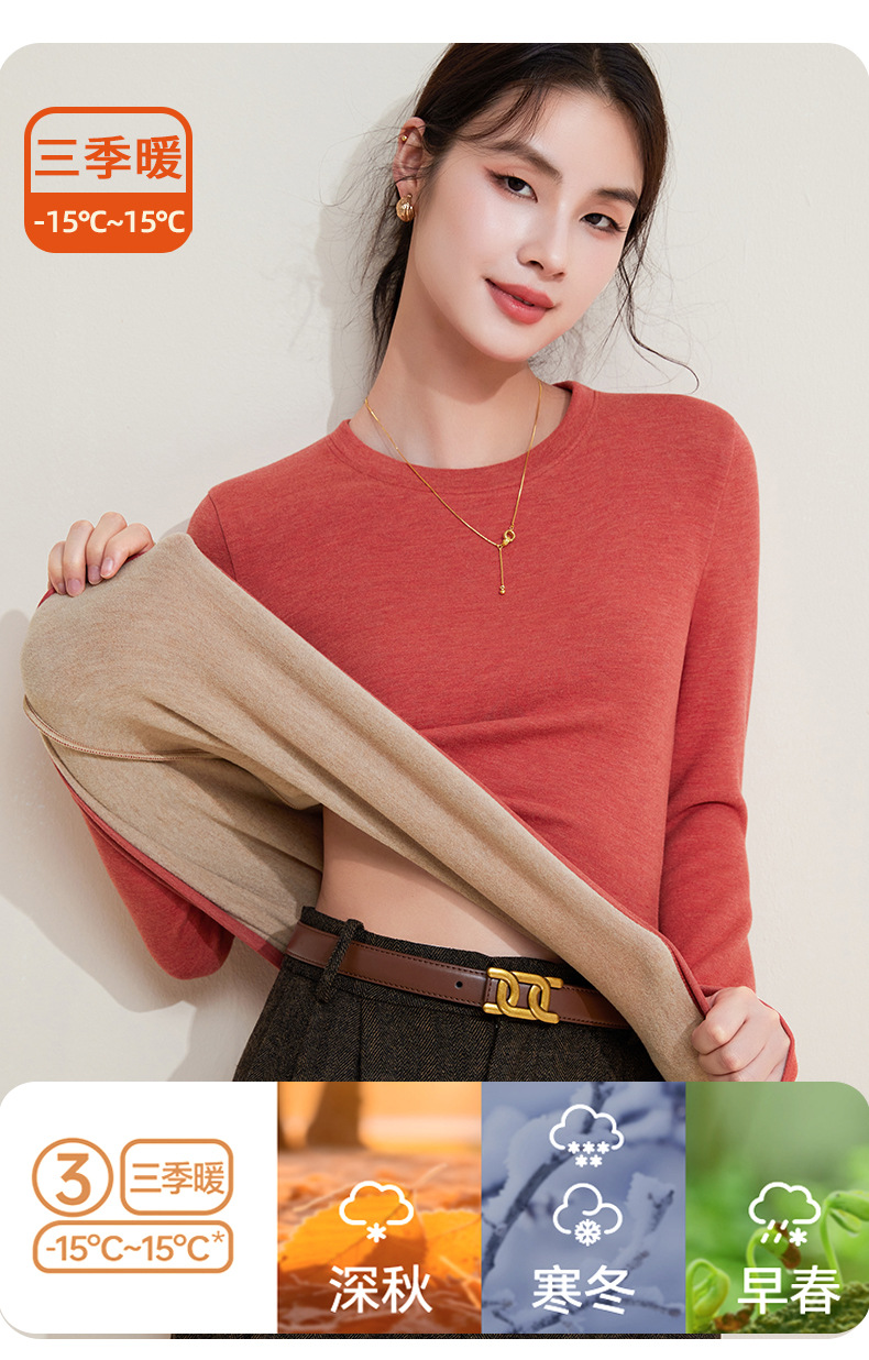 丁摩 羊毛蚕丝圆领打底衫女秋冬加绒加厚发热绒修身显瘦T恤保暖上衣女5ZF-388