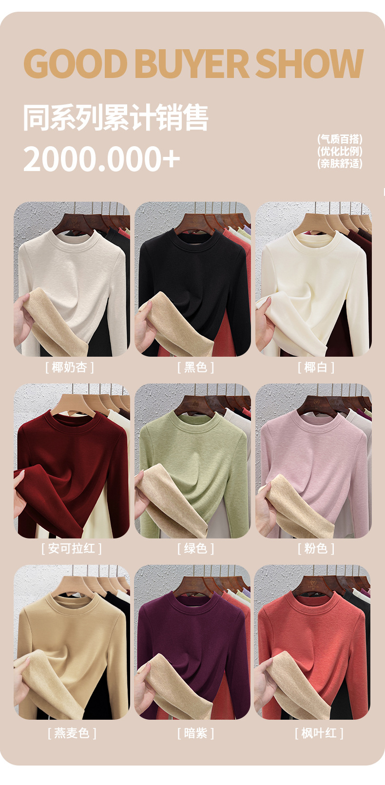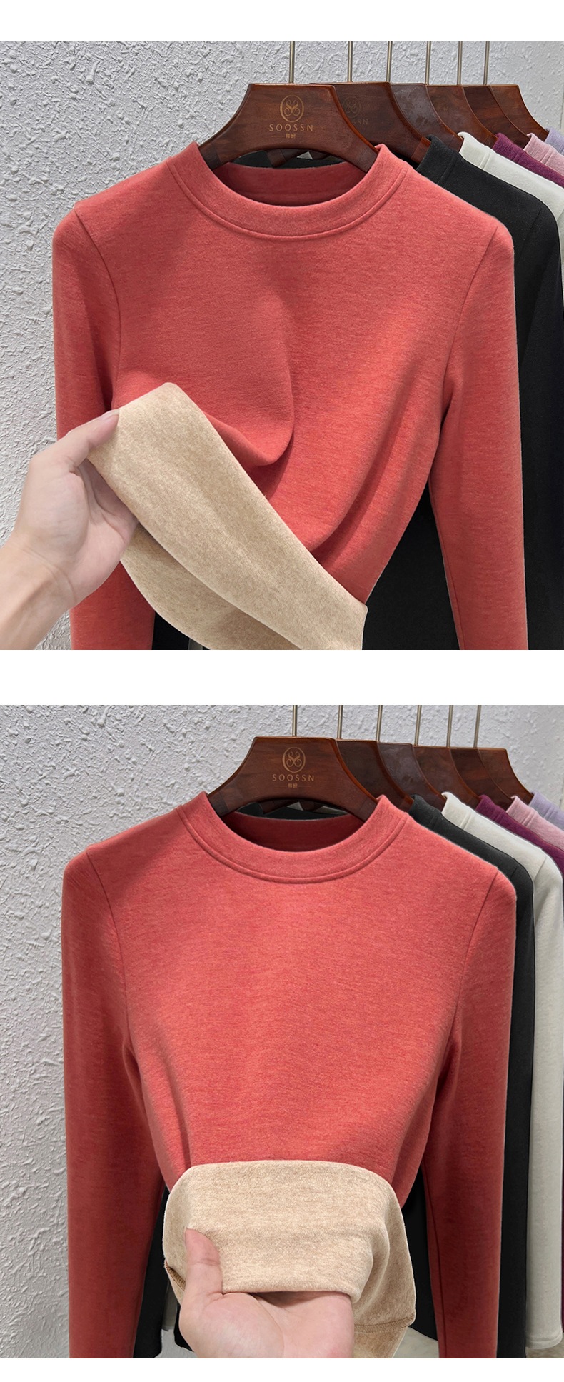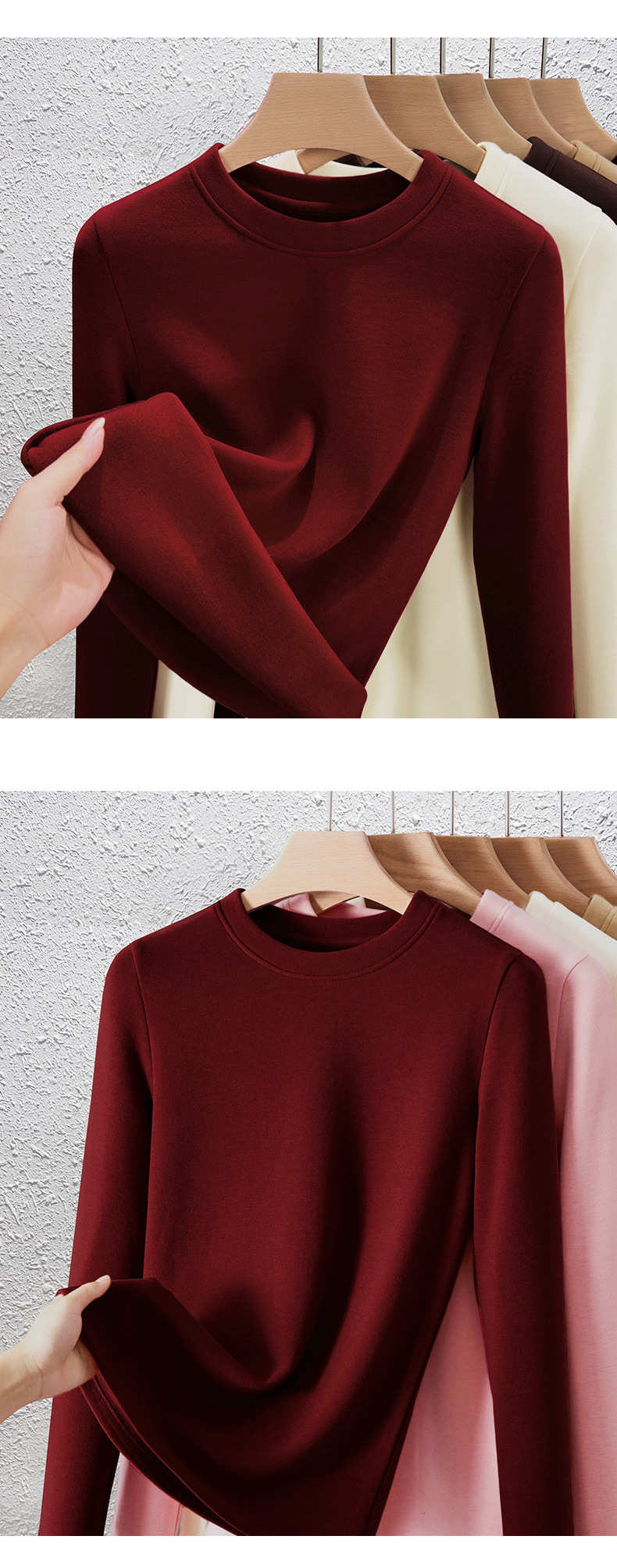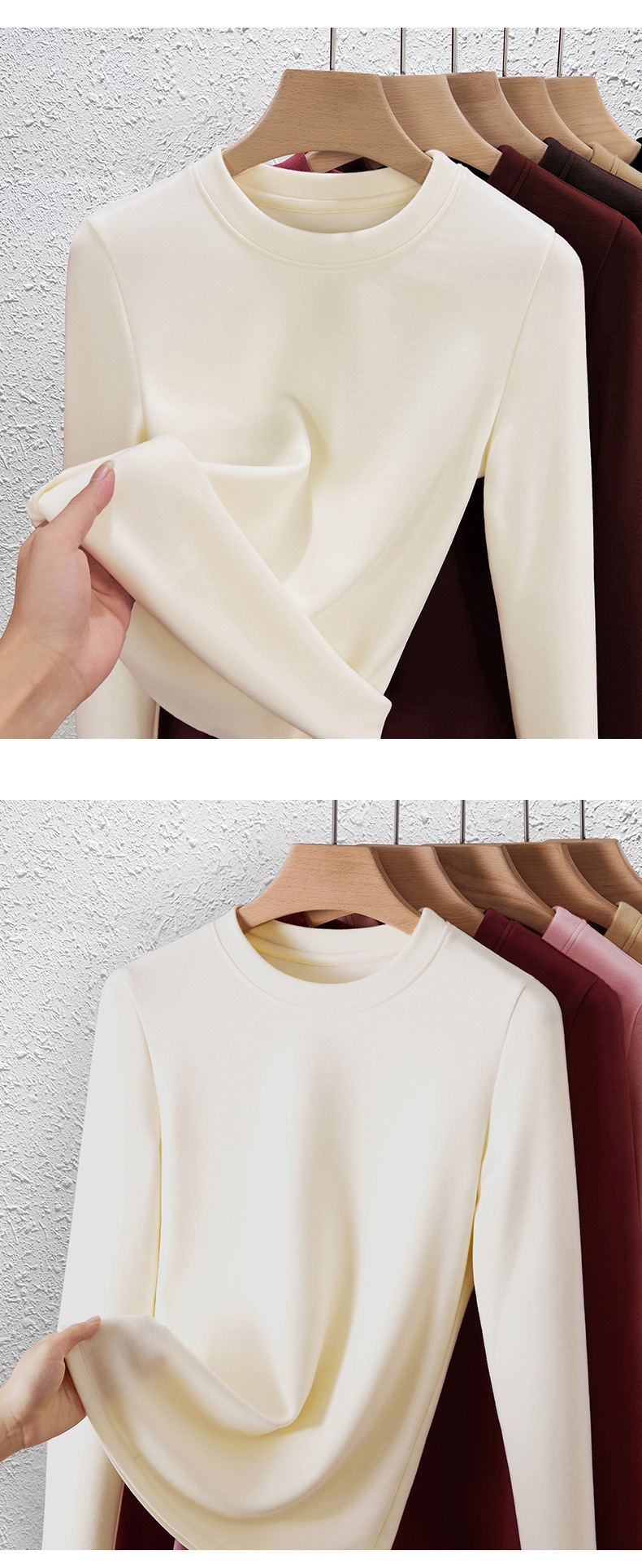 丁摩 羊毛蚕丝圆领打底衫女秋冬加绒加厚发热绒修身显瘦T恤保暖上衣女5ZF-388