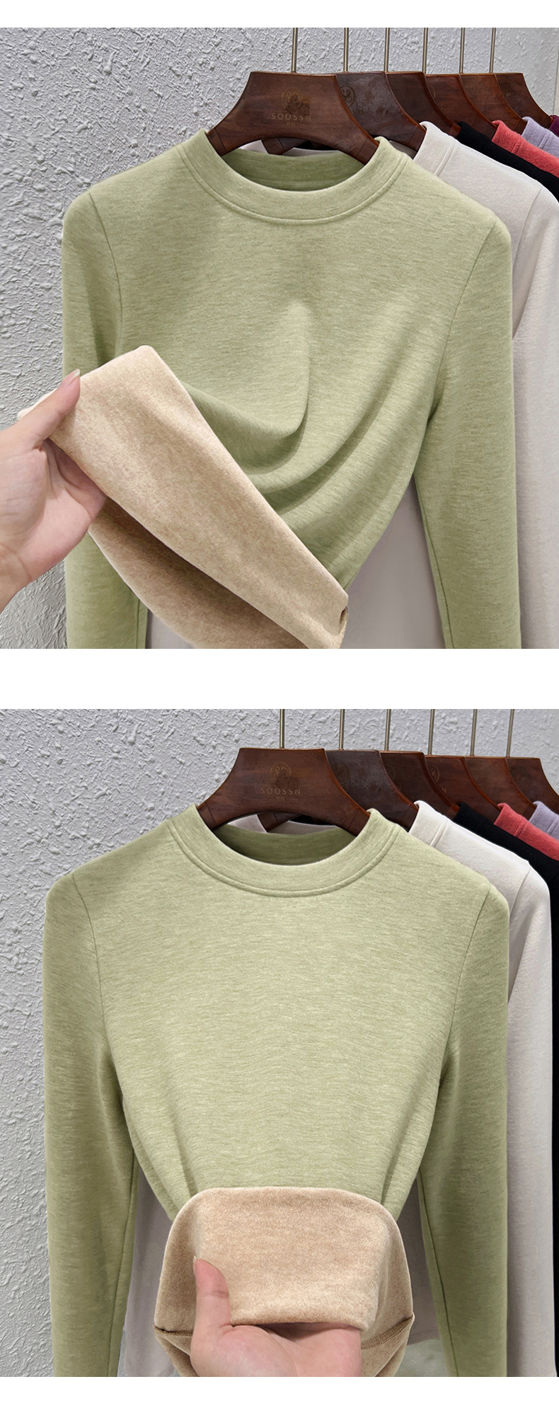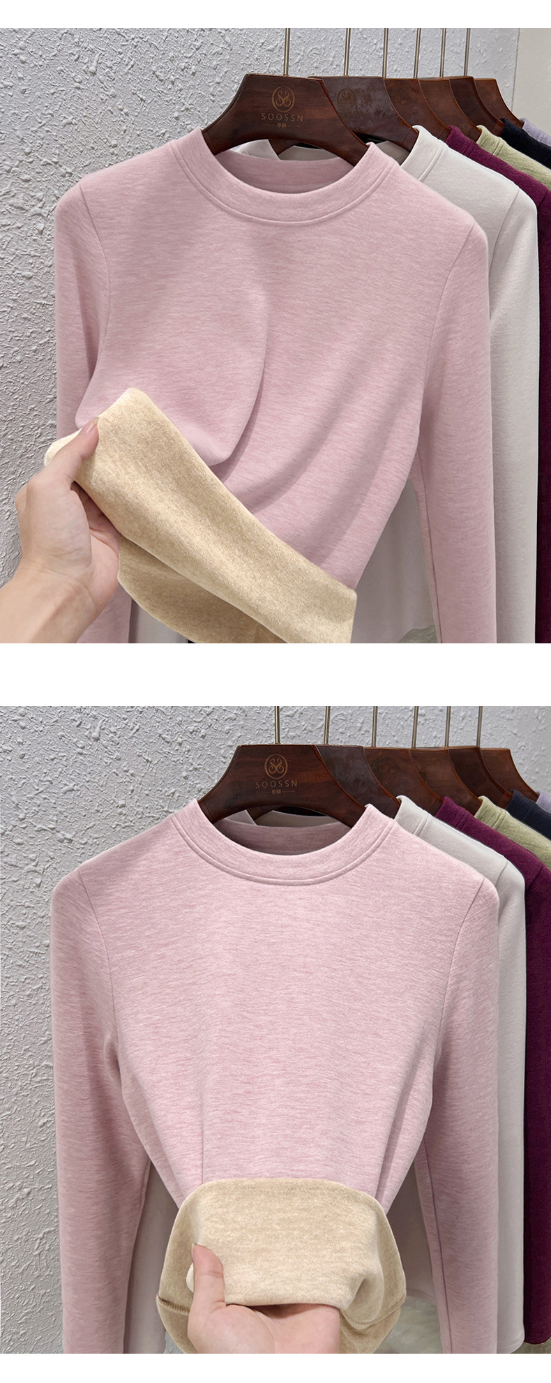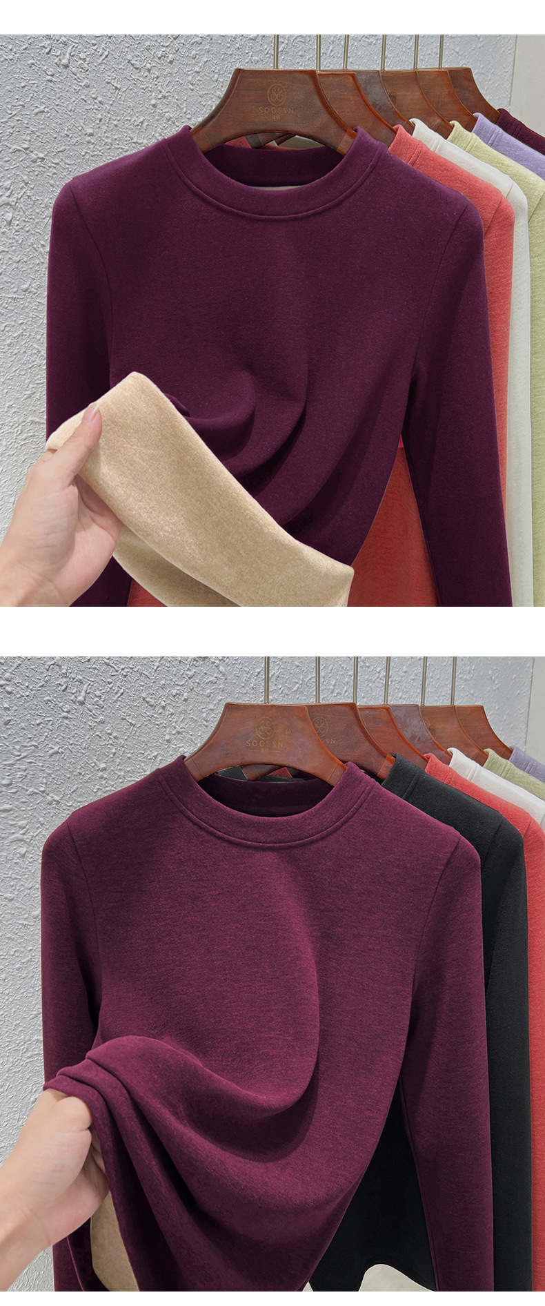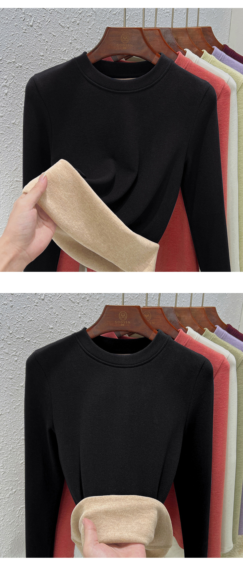 丁摩 羊毛蚕丝圆领打底衫女秋冬加绒加厚发热绒修身显瘦T恤保暖上衣女5ZF-388