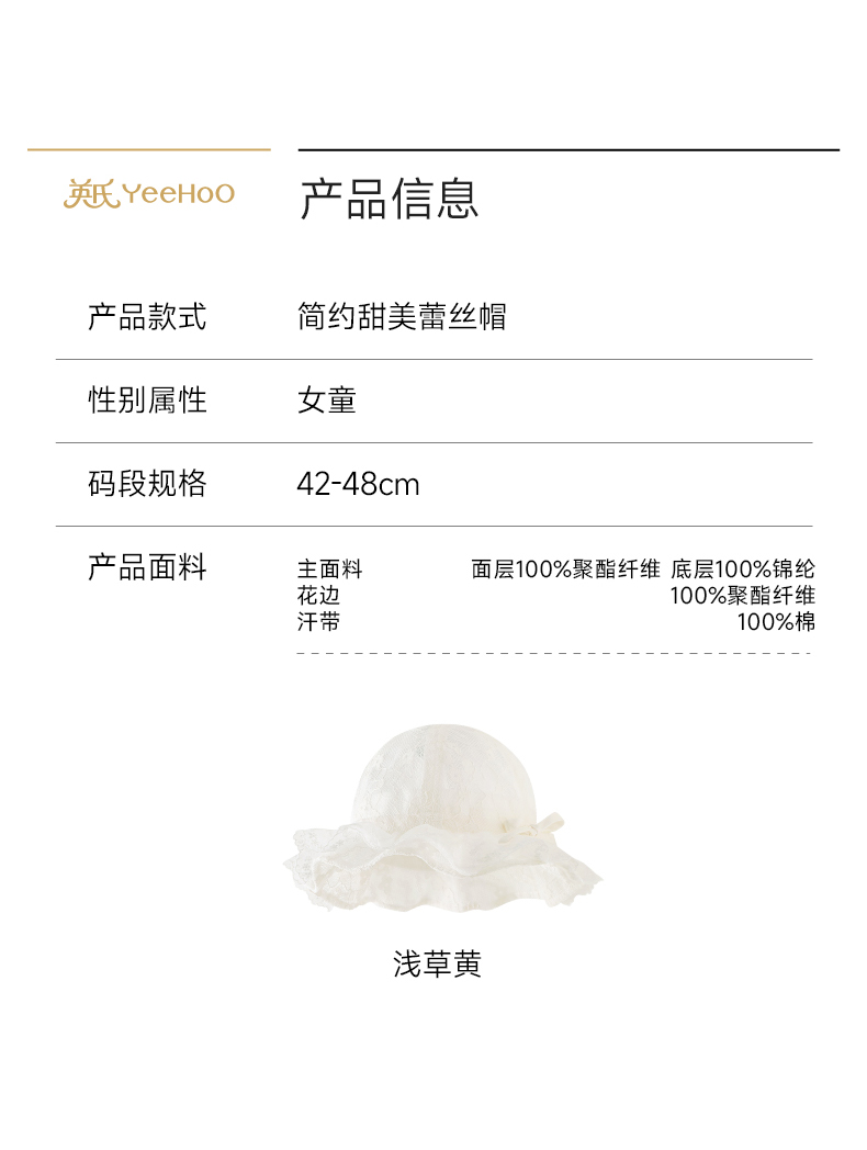 英氏儿童帽子夏季渔夫帽透气可爱女宝帽子遮阳帽女