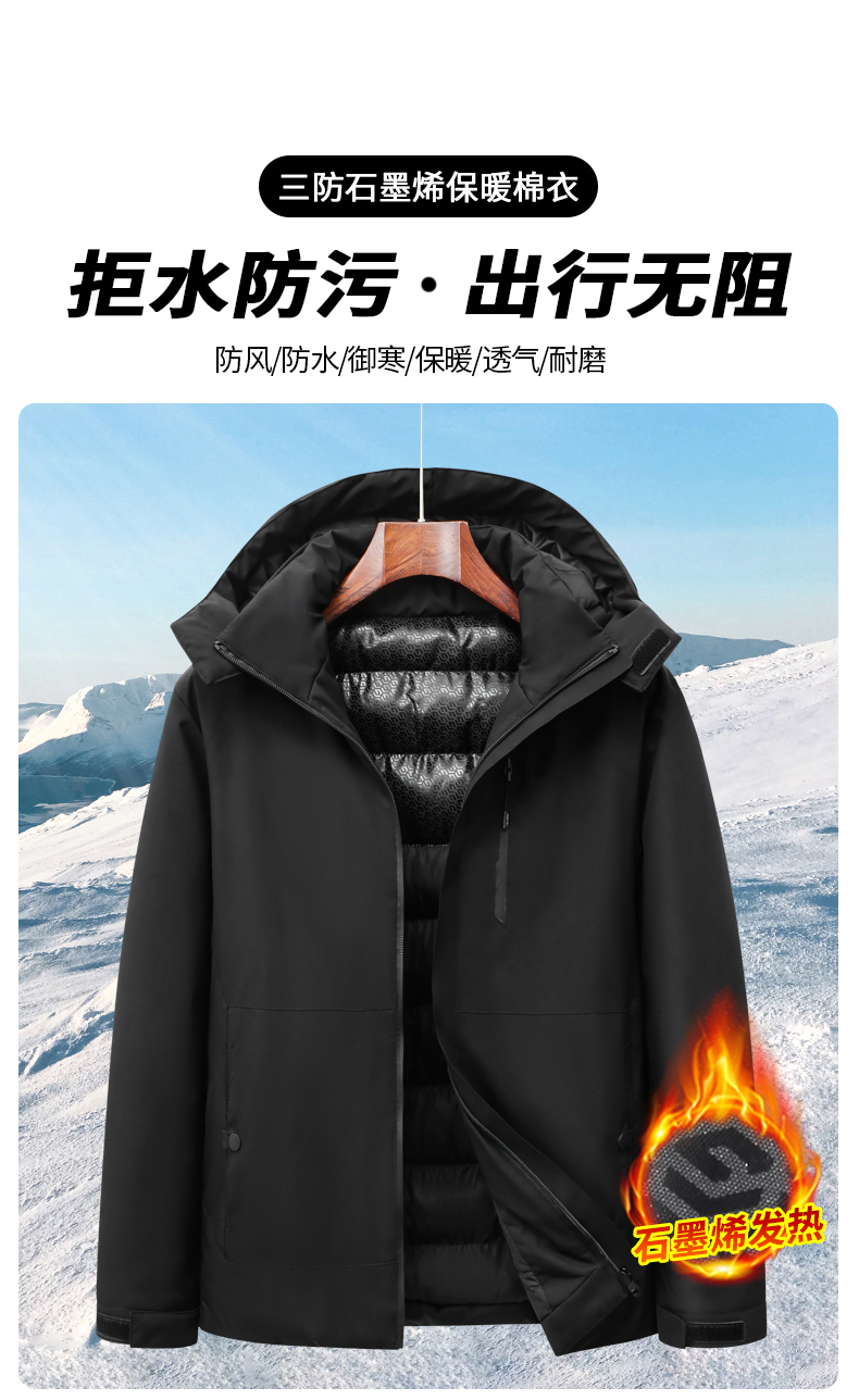 【三防石墨烯】【可拆卸帽】【新款DXC】大依优型大码连帽棉服保暖棉衣加厚加肥加大上衣男士外套胖子潮款