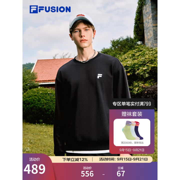 圆领设计 经典白搭,前胸刺绣logo精致吸睛!纯棉毛圈面料