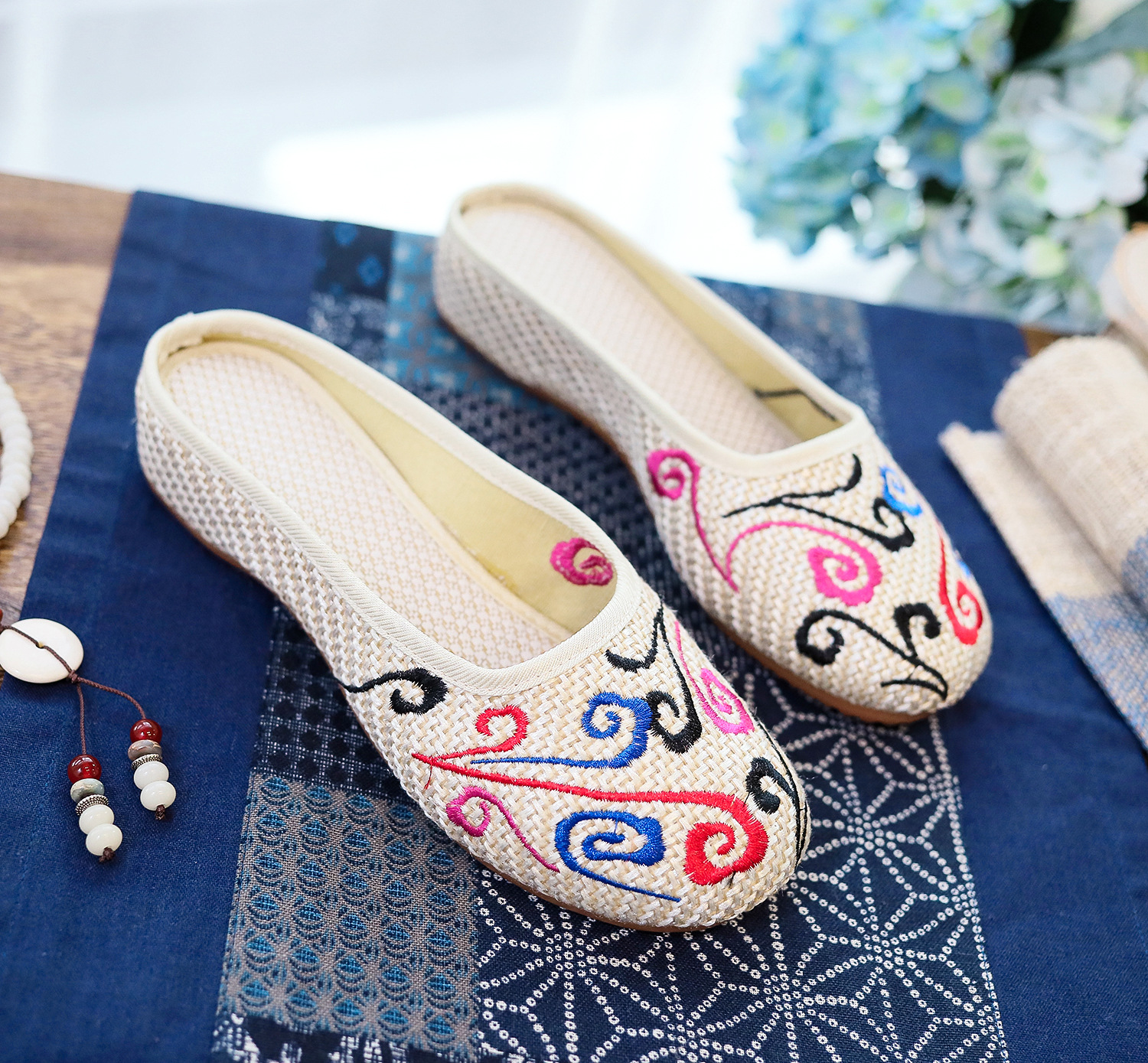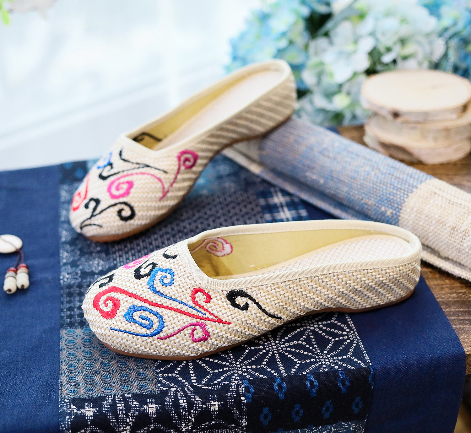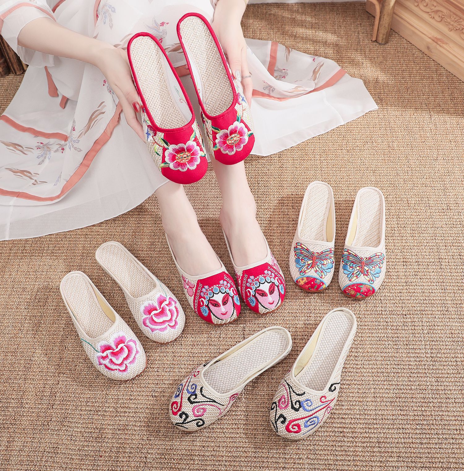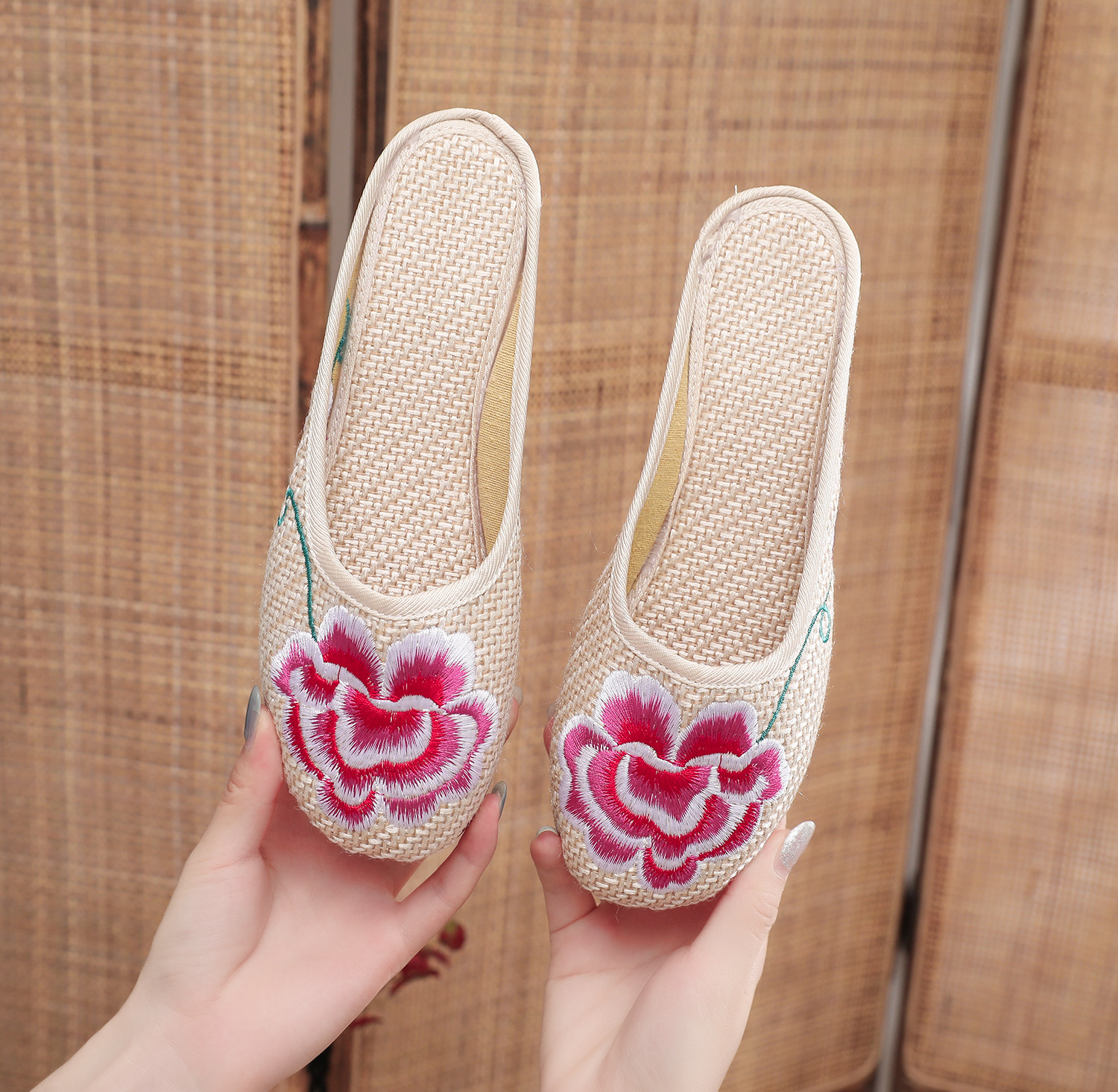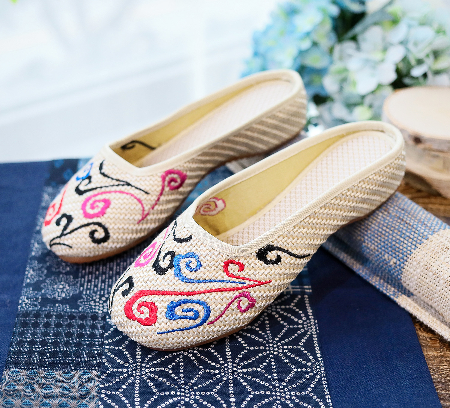 老北京布鞋民族风亚麻平底仙女风半拖SB3300-3