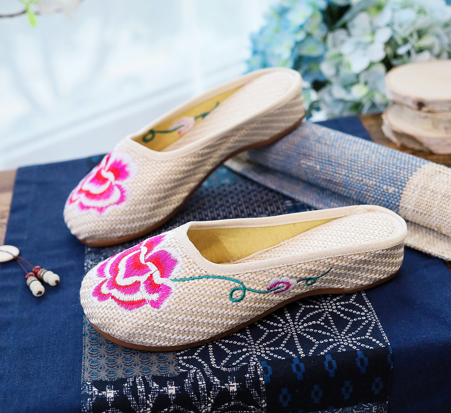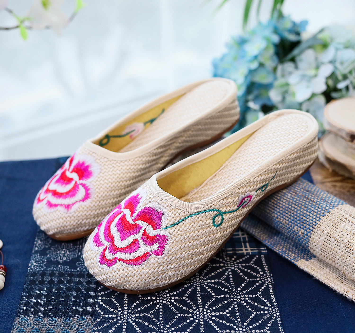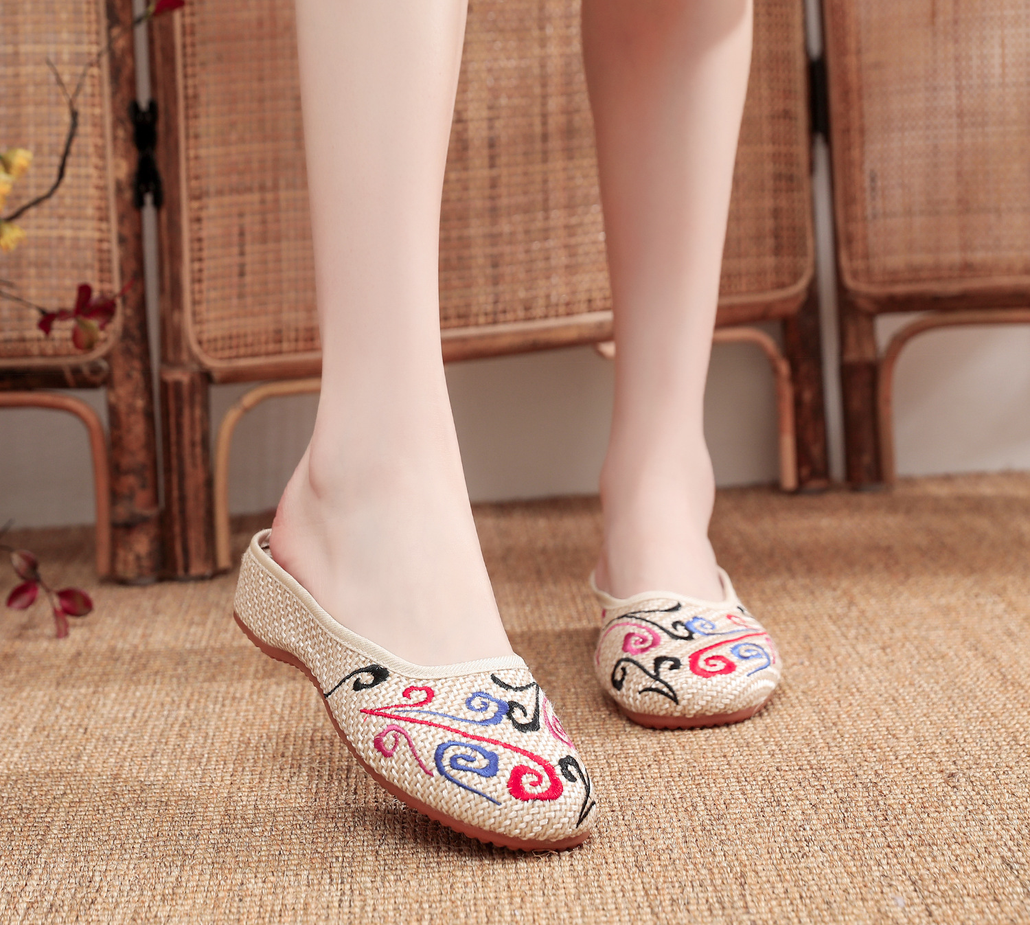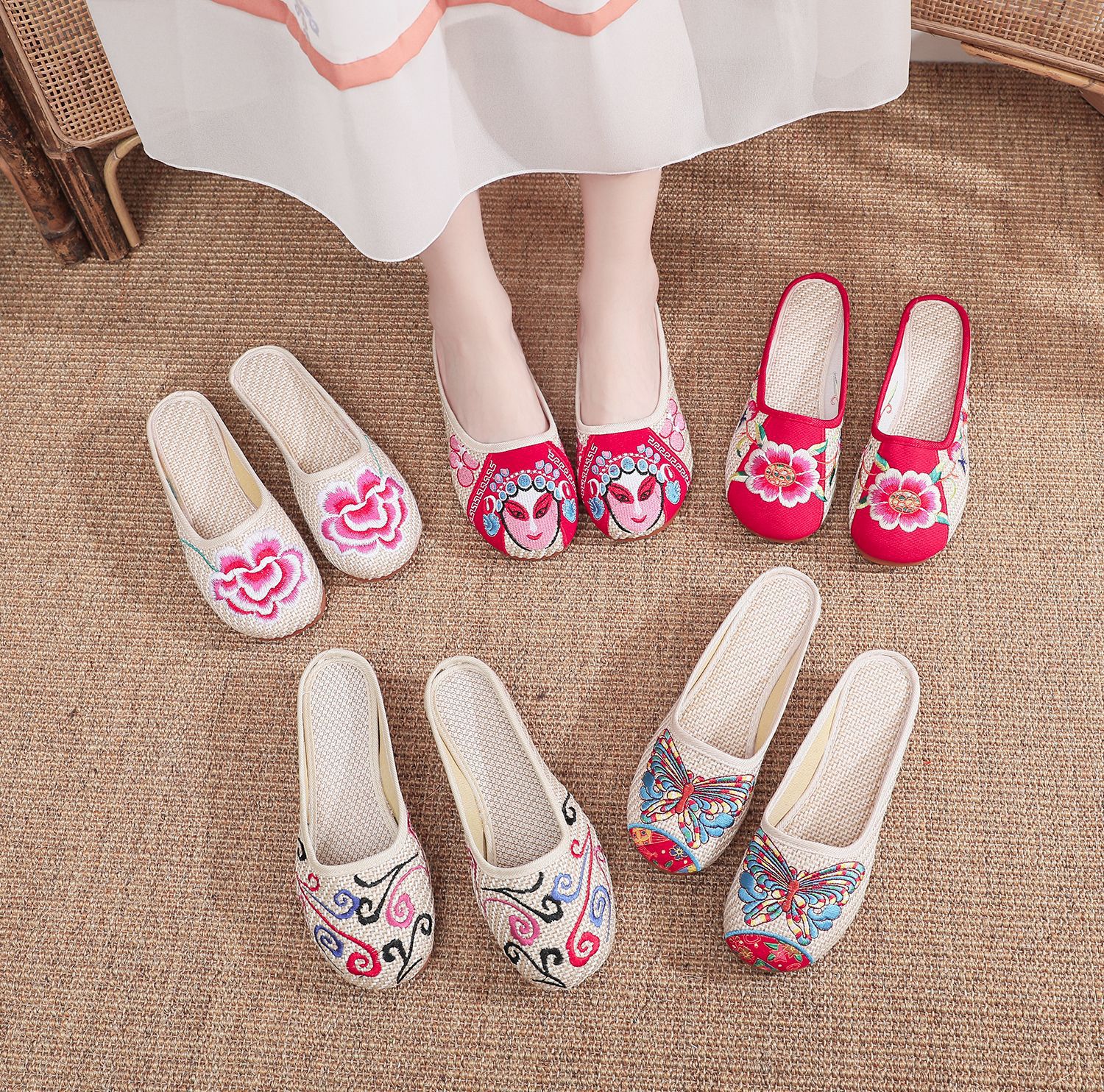 老北京布鞋民族风亚麻平底仙女风半拖SB3300-3