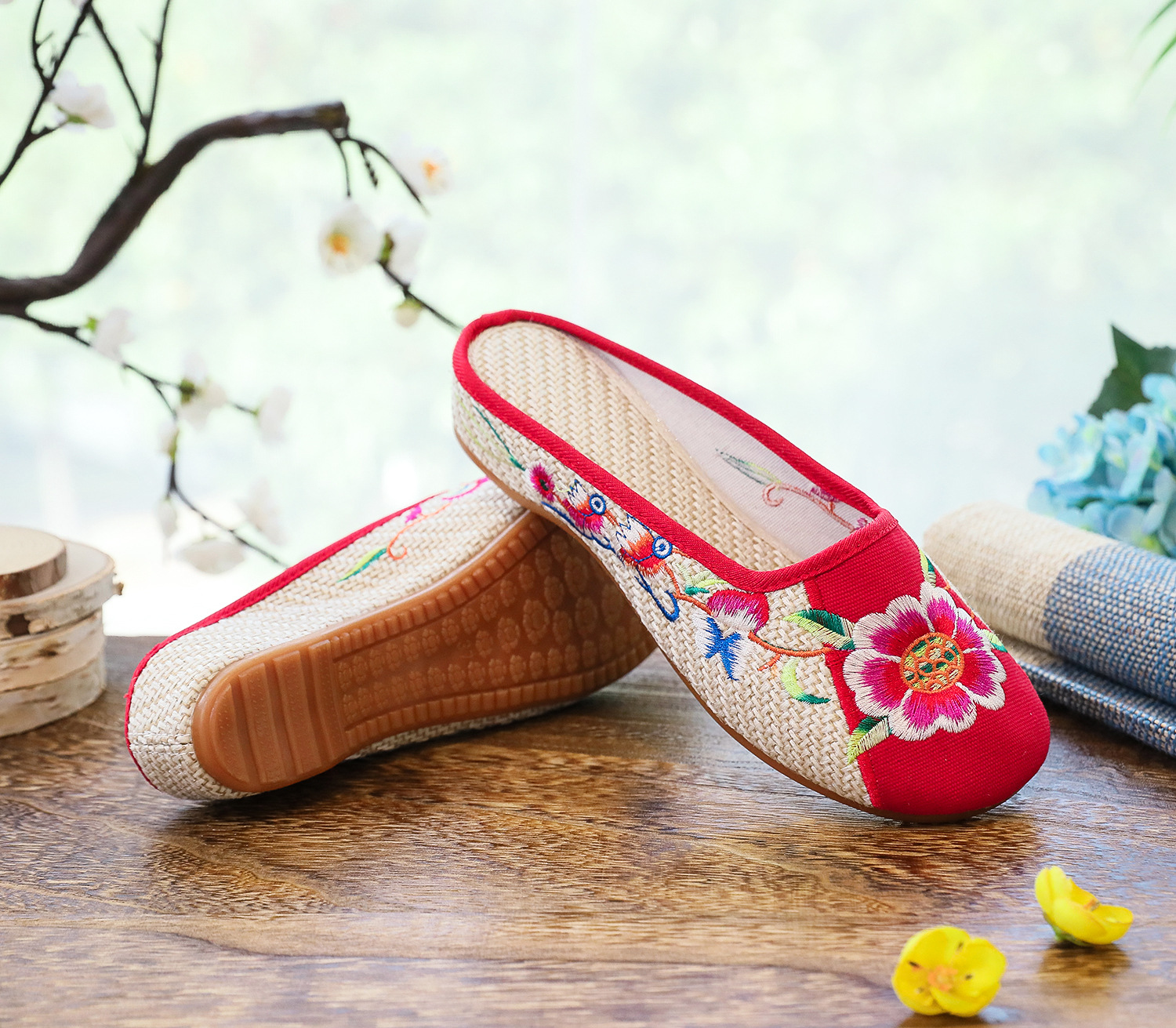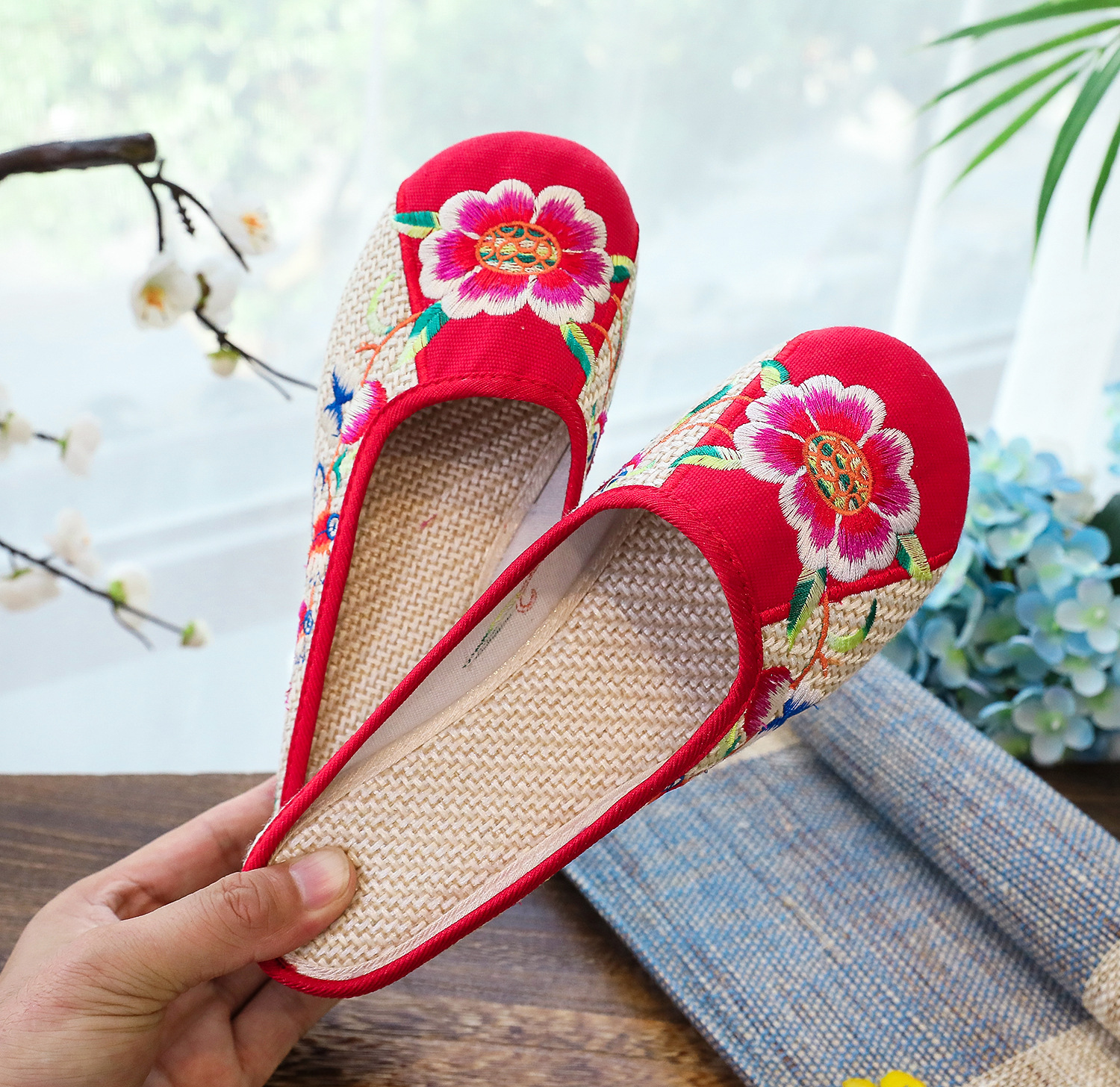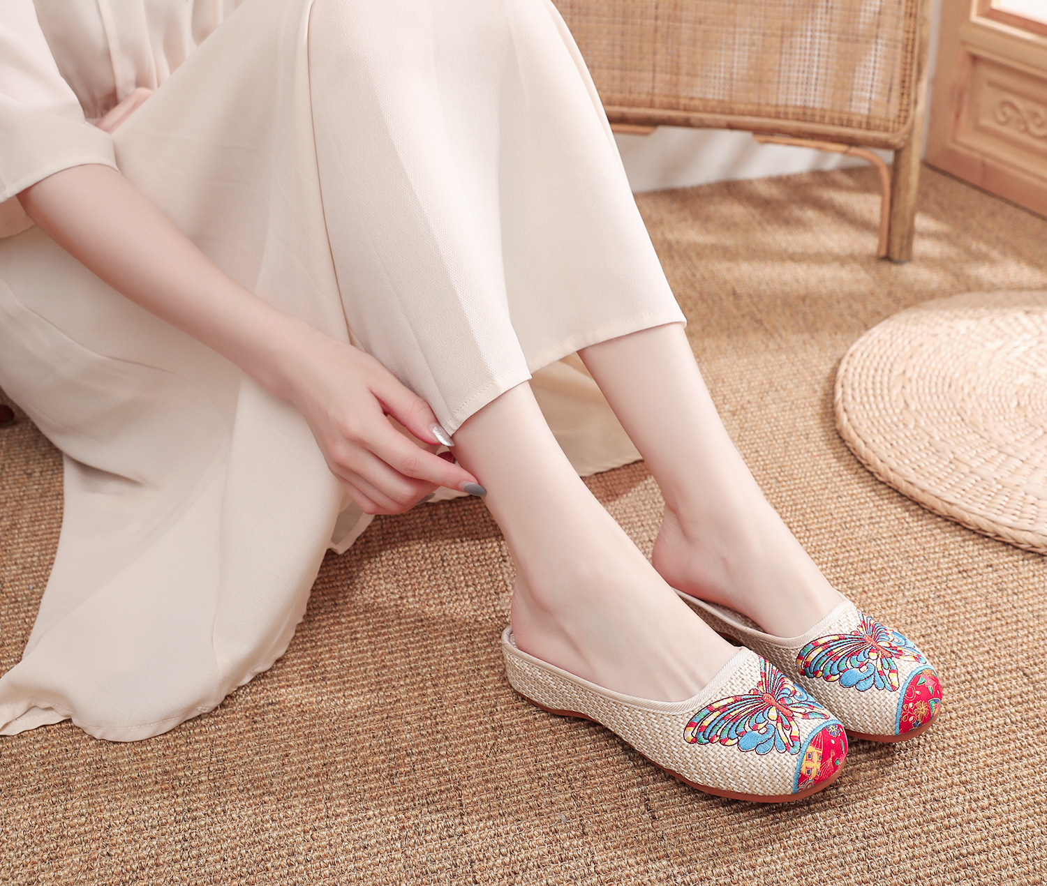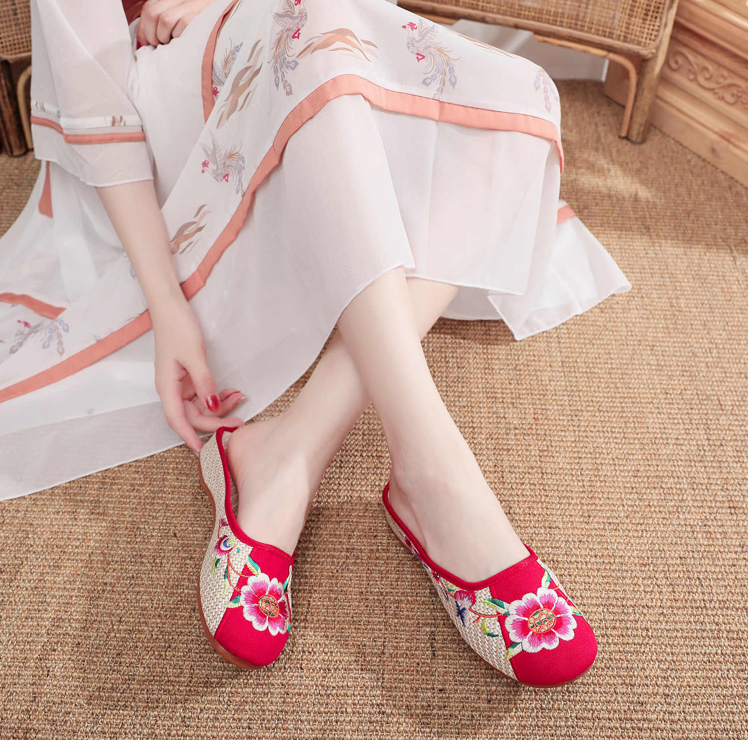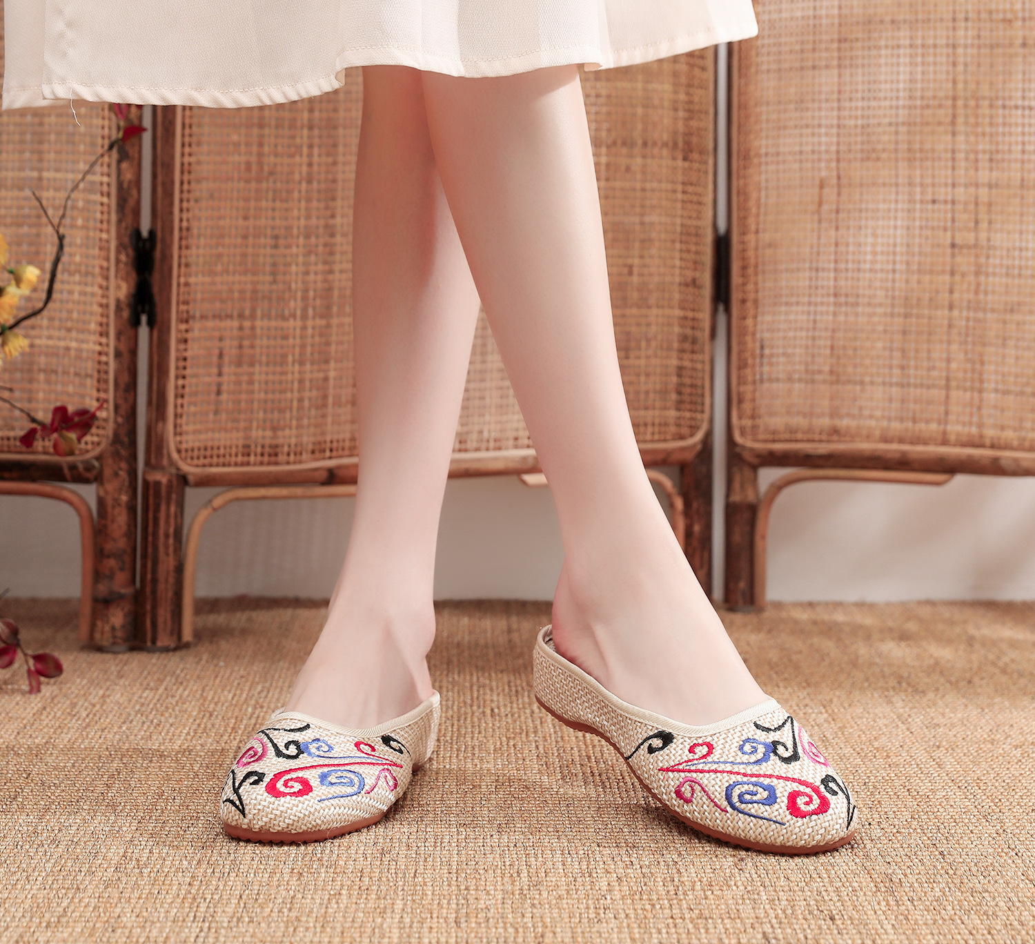 老北京布鞋民族风亚麻平底仙女风半拖SB3300-3