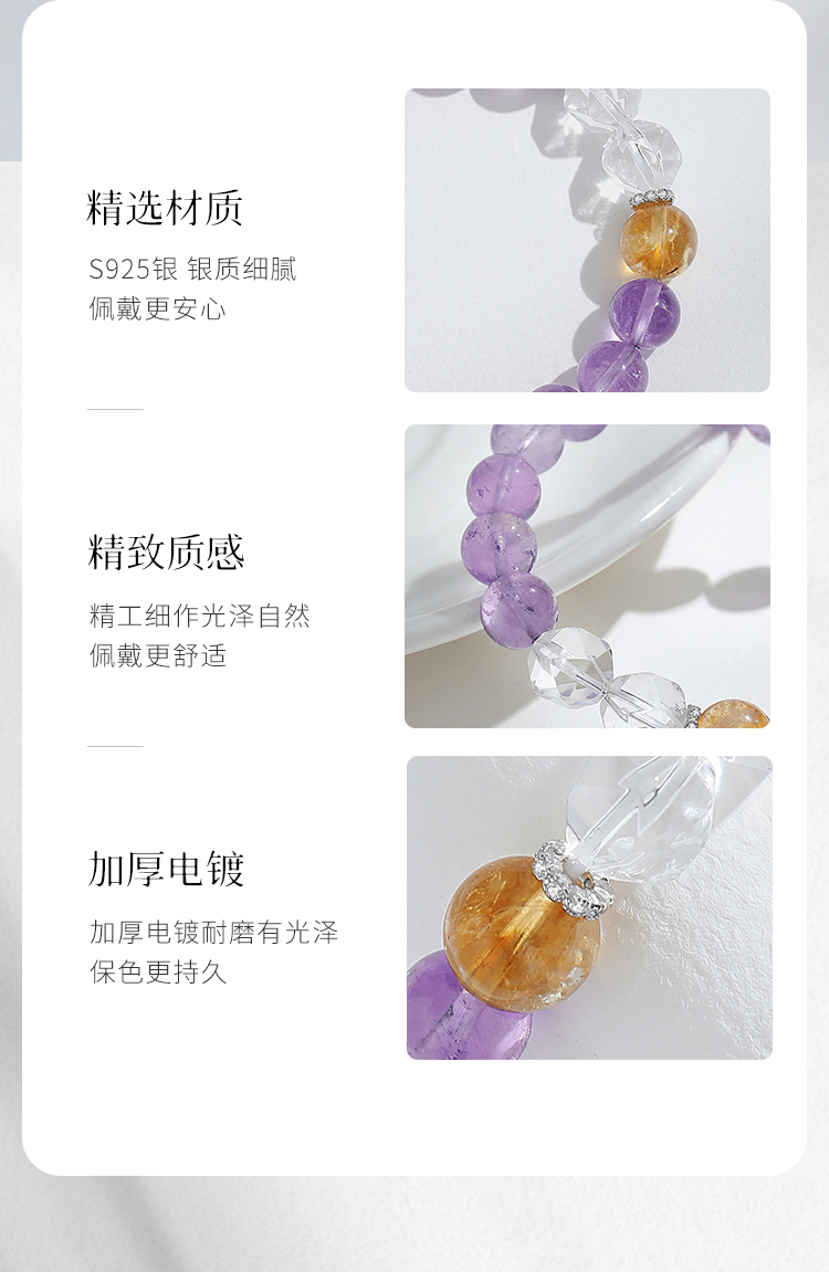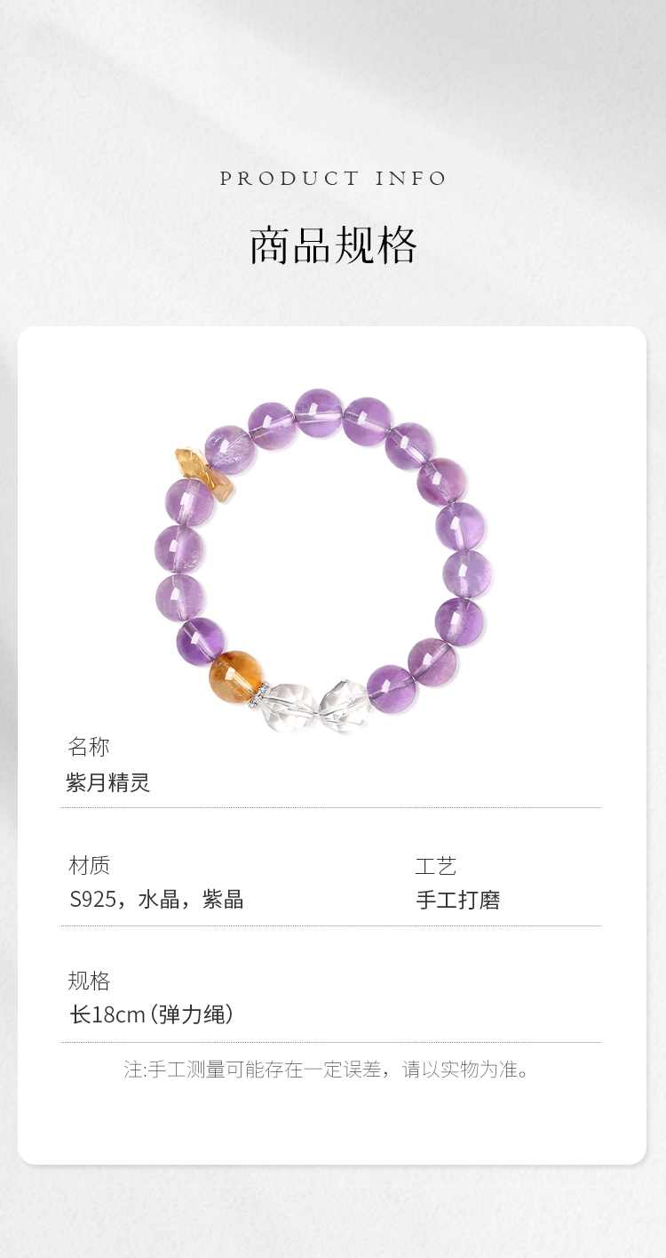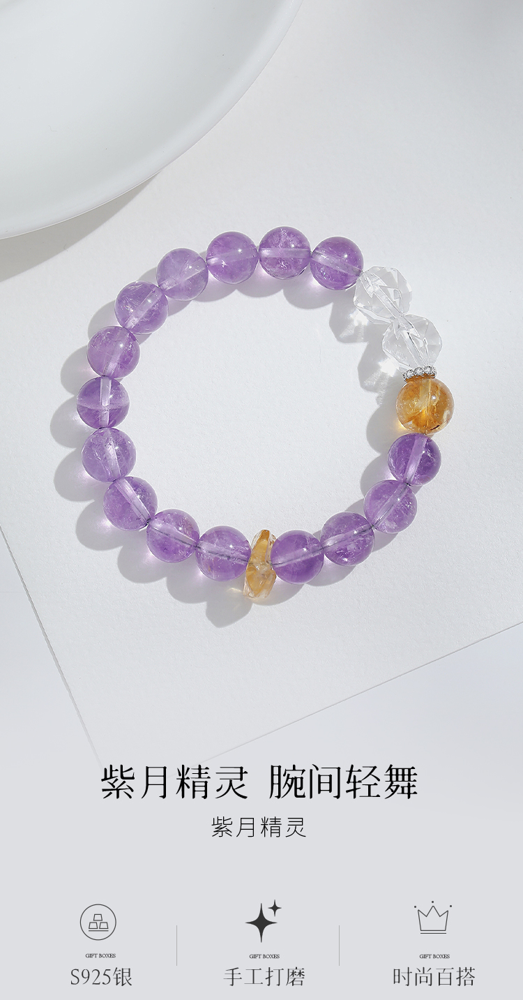 Winy s925银紫月精灵手链搭配水晶紫晶配证书送女友闺蜜节日生日礼物