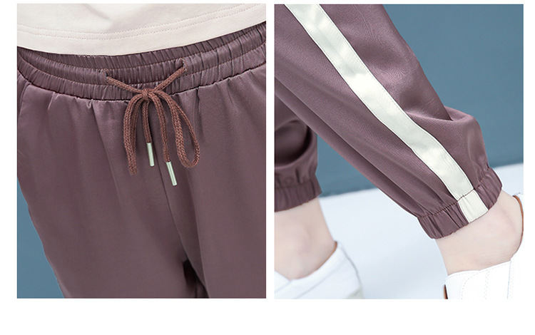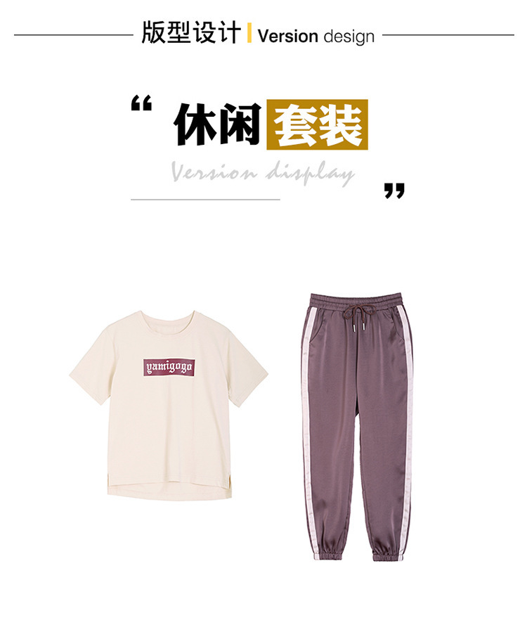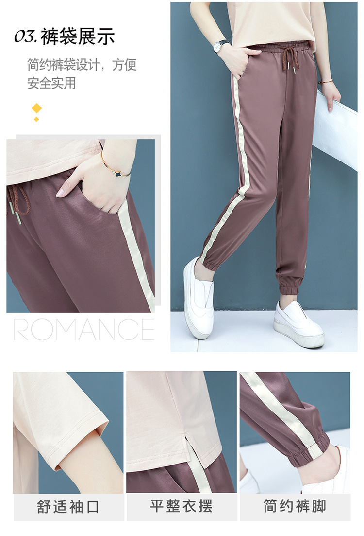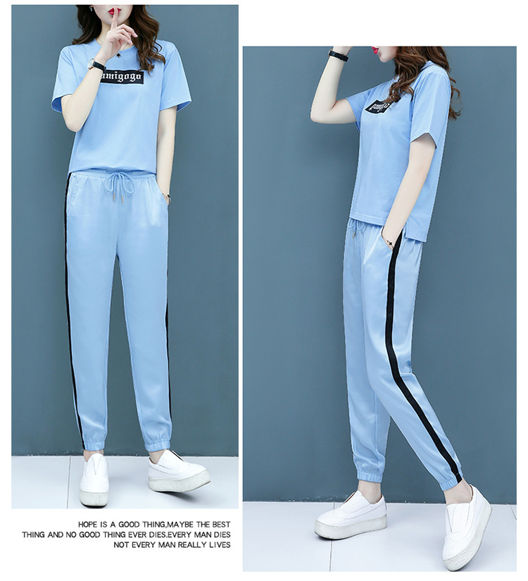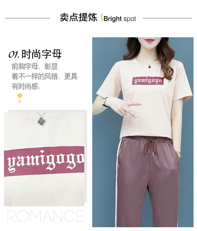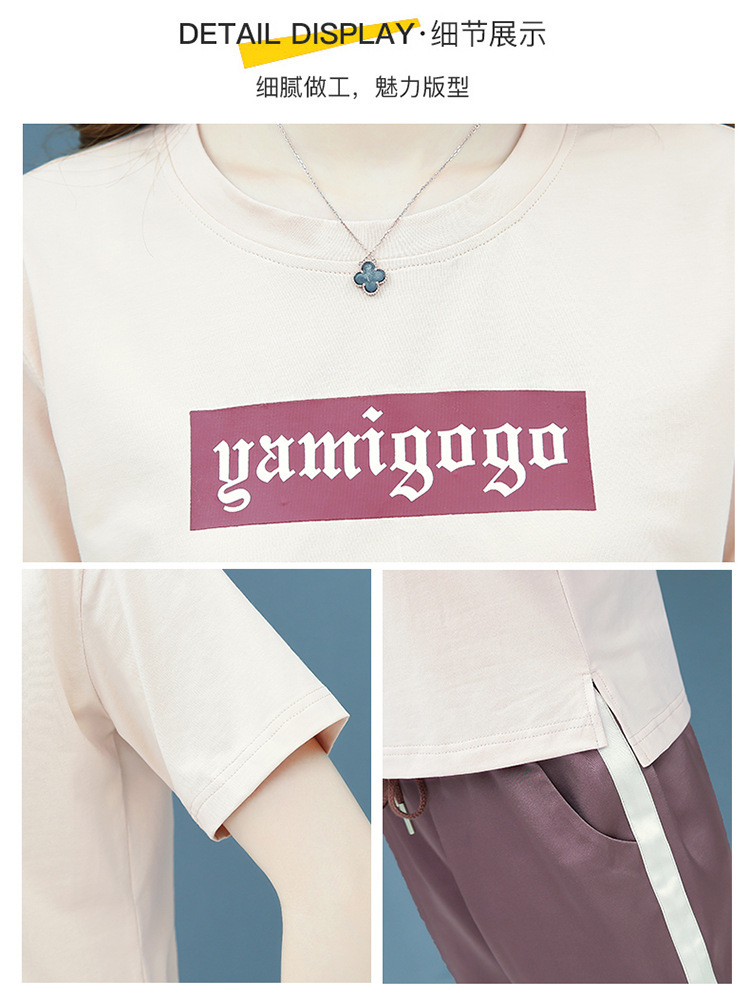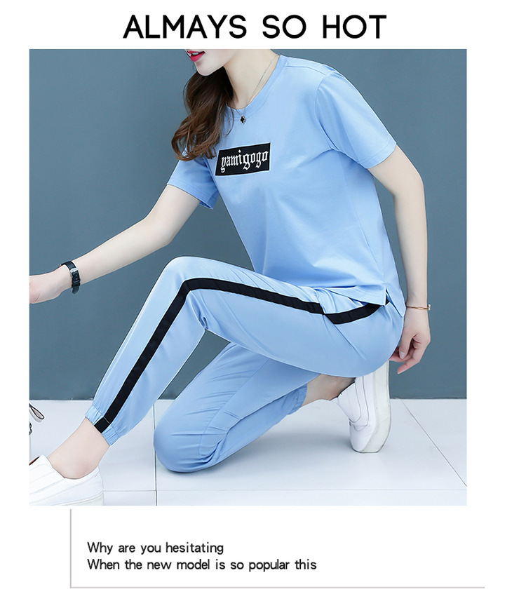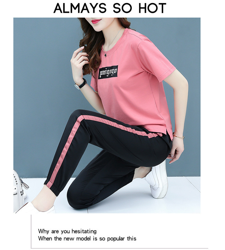 图荣夏季款女生短袖休闲套装韩版时尚字母印花束脚长裤运动两件套