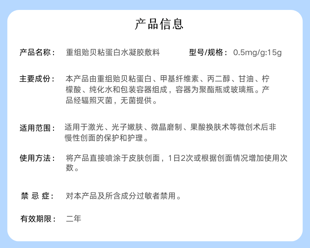绽妍 安亦佳 重组贻贝粘蛋白水凝胶敷料