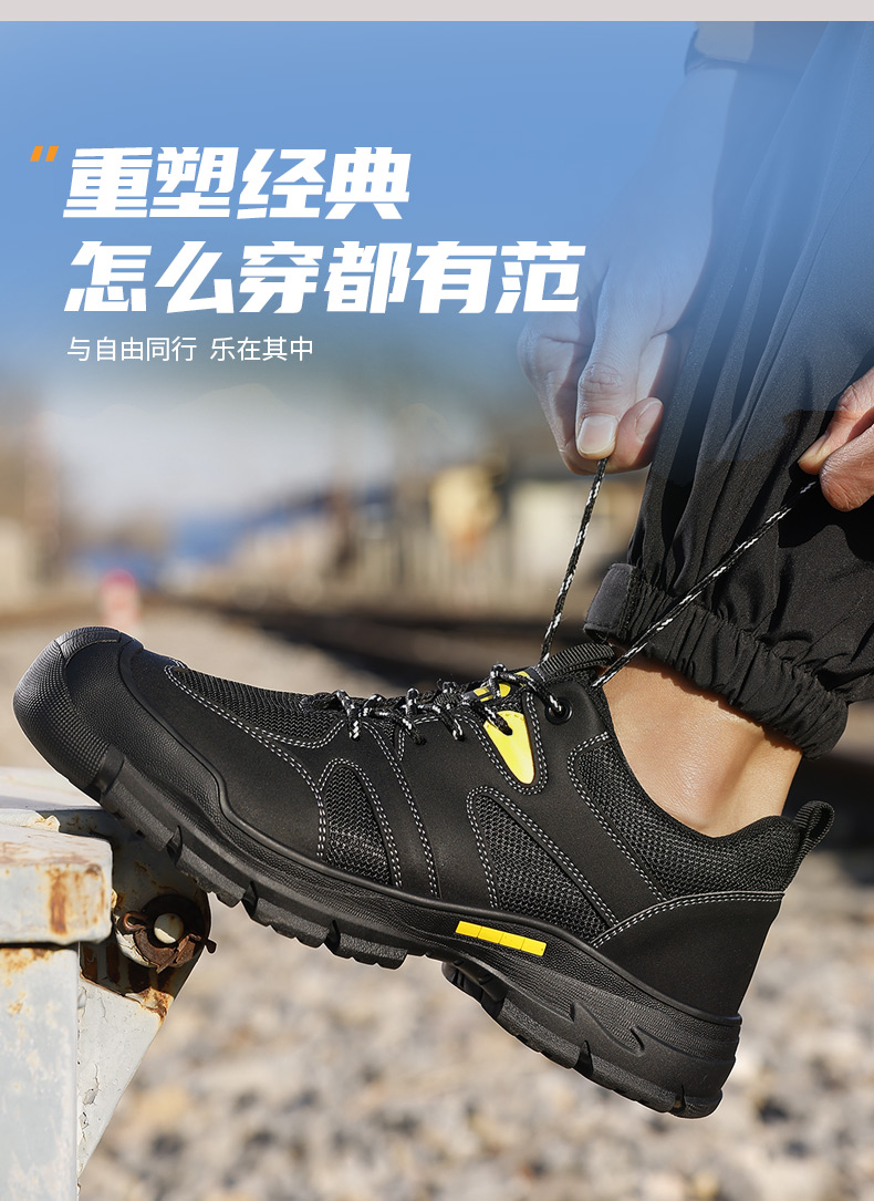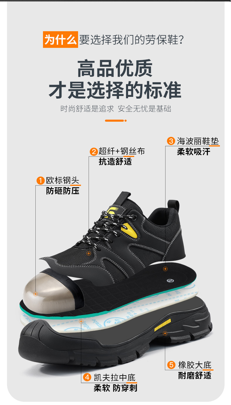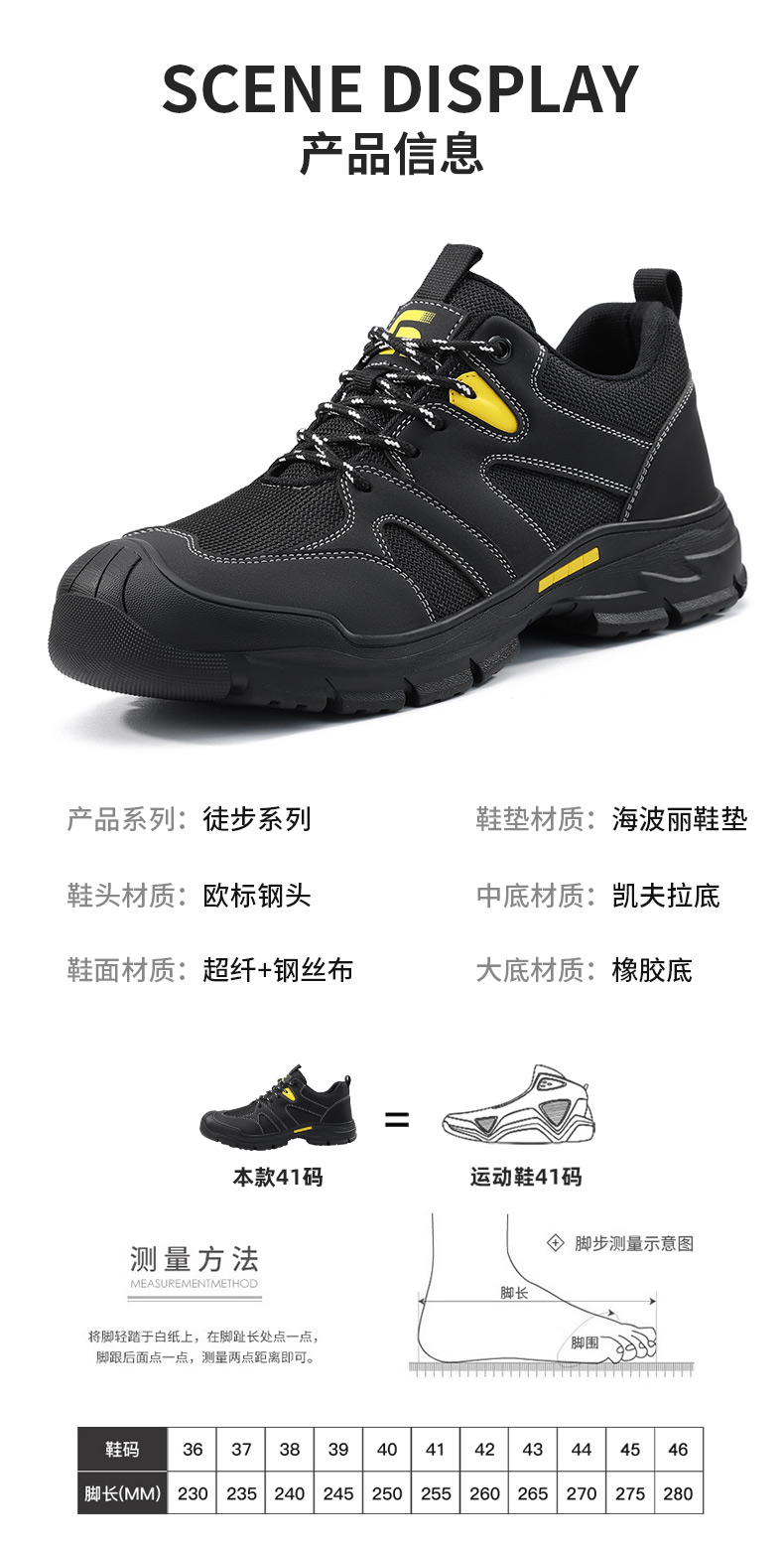 新品透气超纤+钢丝布鞋面 防砸防刺安全鞋钢包头劳保鞋工作鞋橡胶底柔软舒适