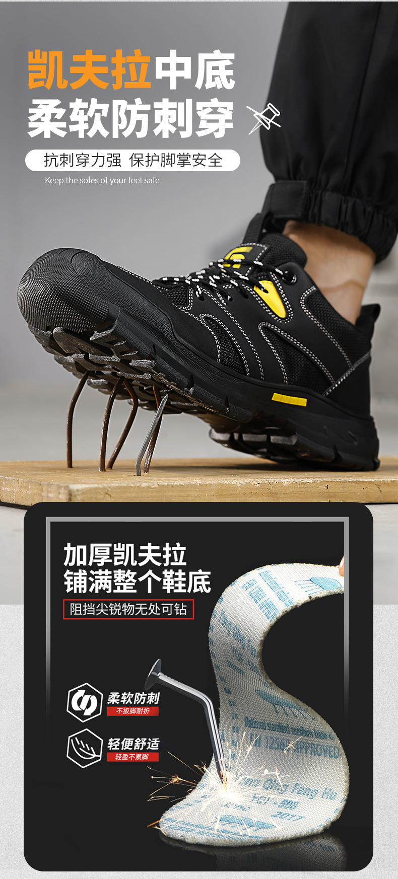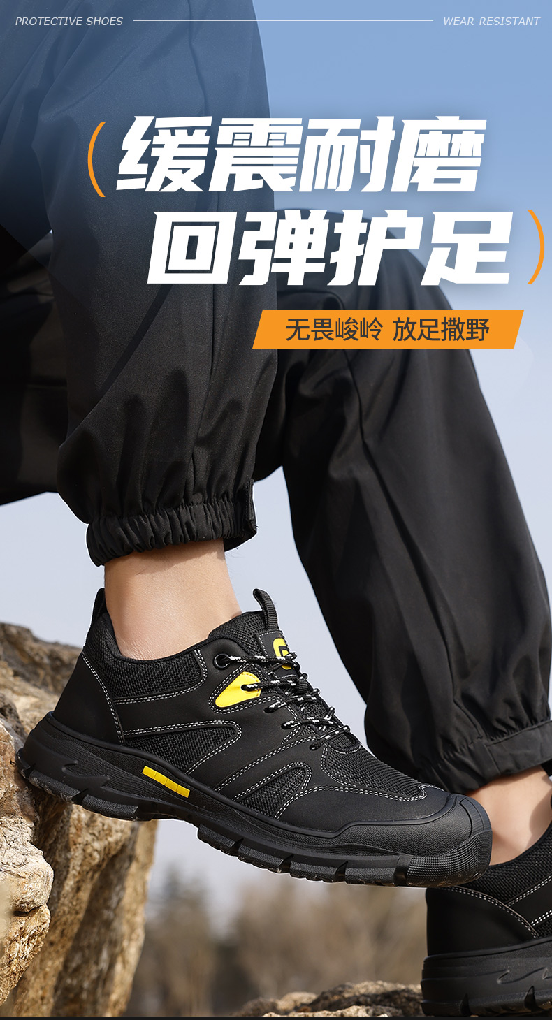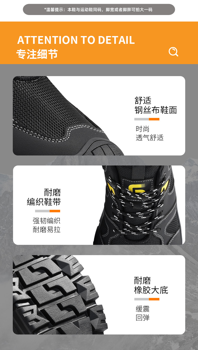 新品透气超纤+钢丝布鞋面 防砸防刺安全鞋钢包头劳保鞋工作鞋橡胶底柔软舒适