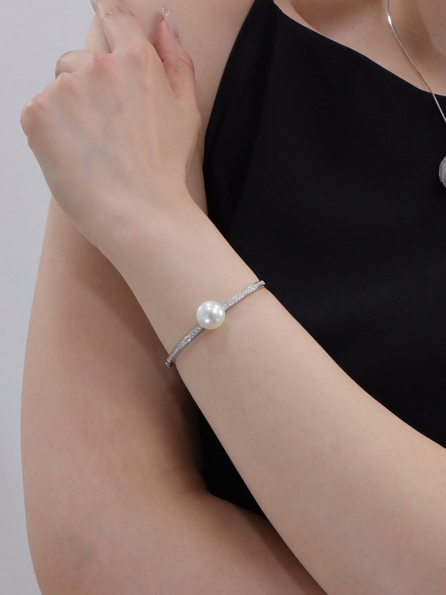 【挚友限定】18k金澳白珍珠钻石手镯 13-14mm
