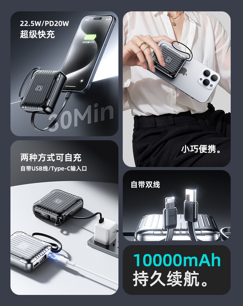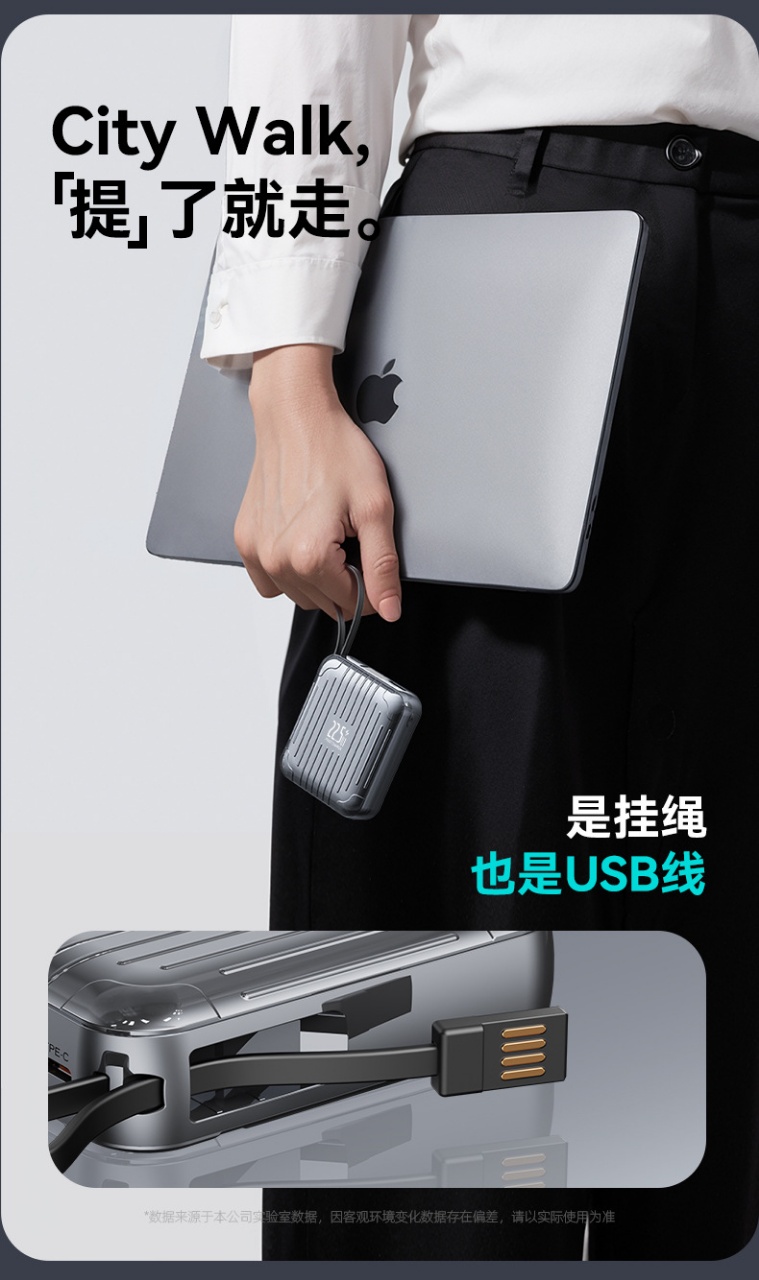 【品名】品柠PINICK便携式10000mAh自带三线创意行李箱快充移动电源手提充电宝