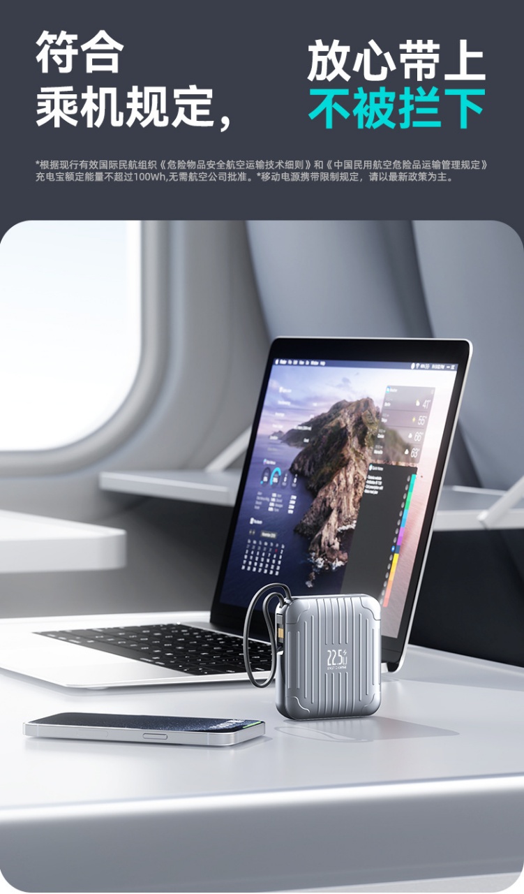 猫太推荐---品柠PINICK便携式10000mAh自带三线创意行李箱快充移动电源手提充电宝