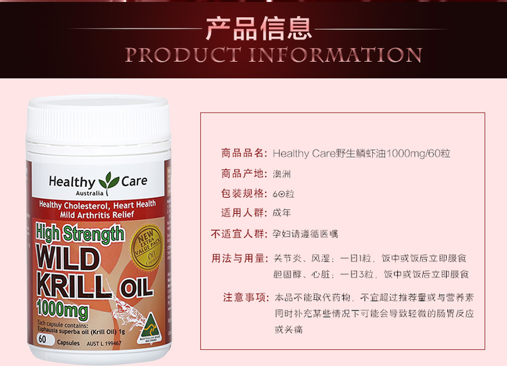 【保税仓】Healthy Care 磷虾油 60s 商品图0