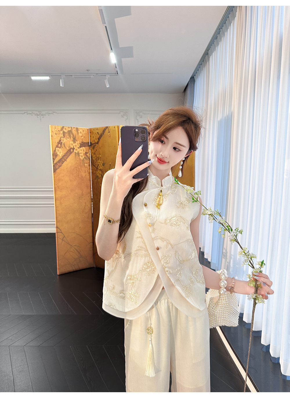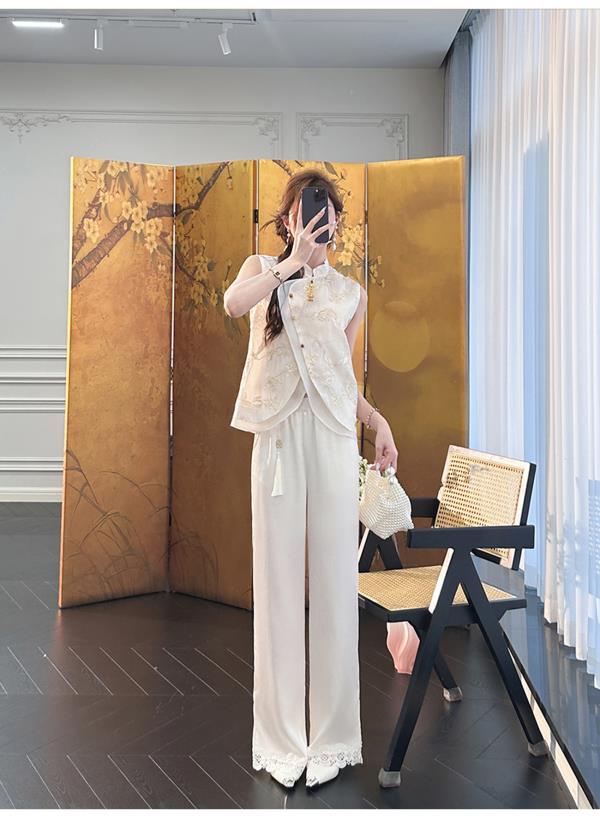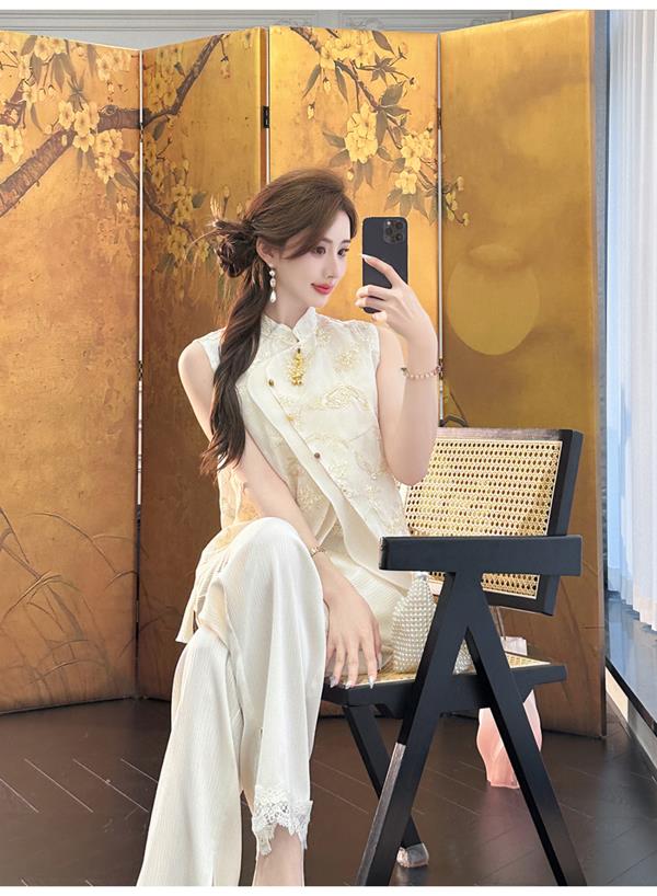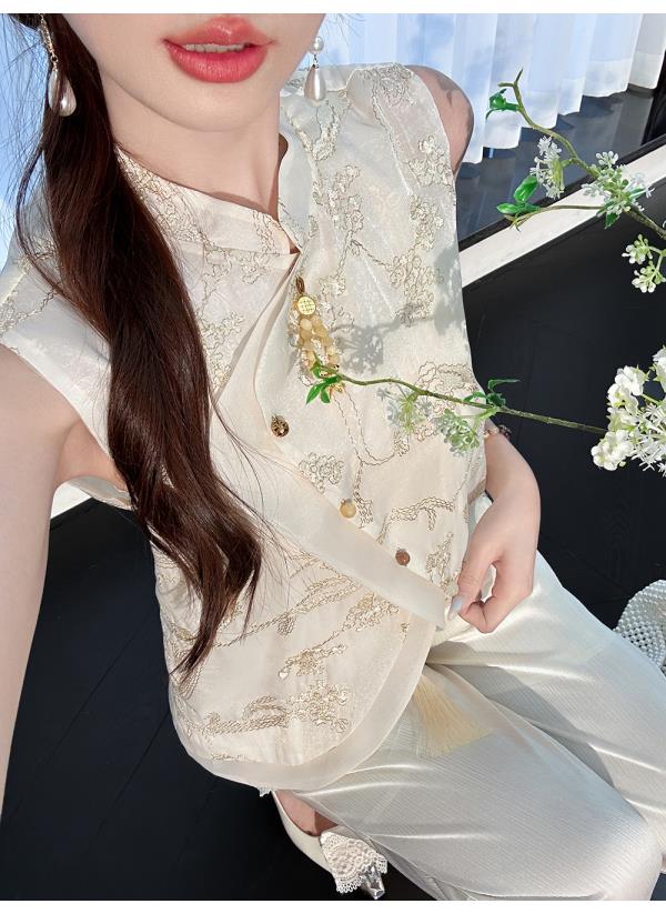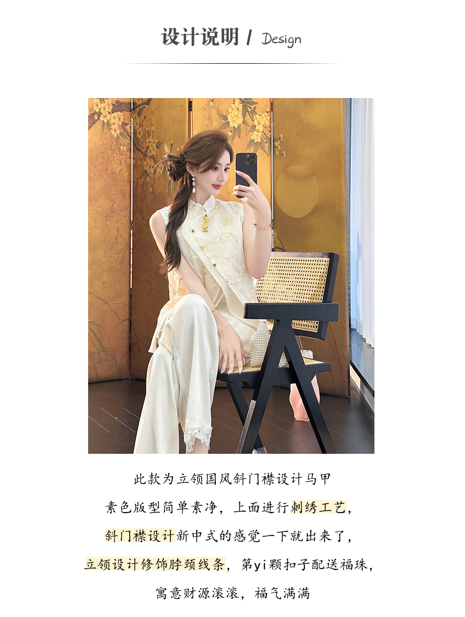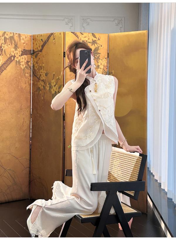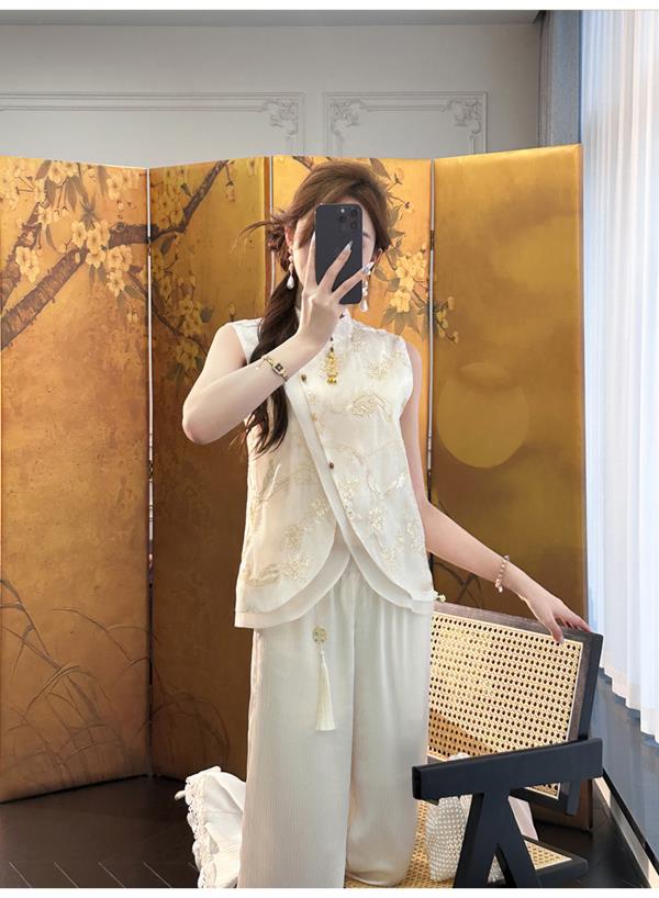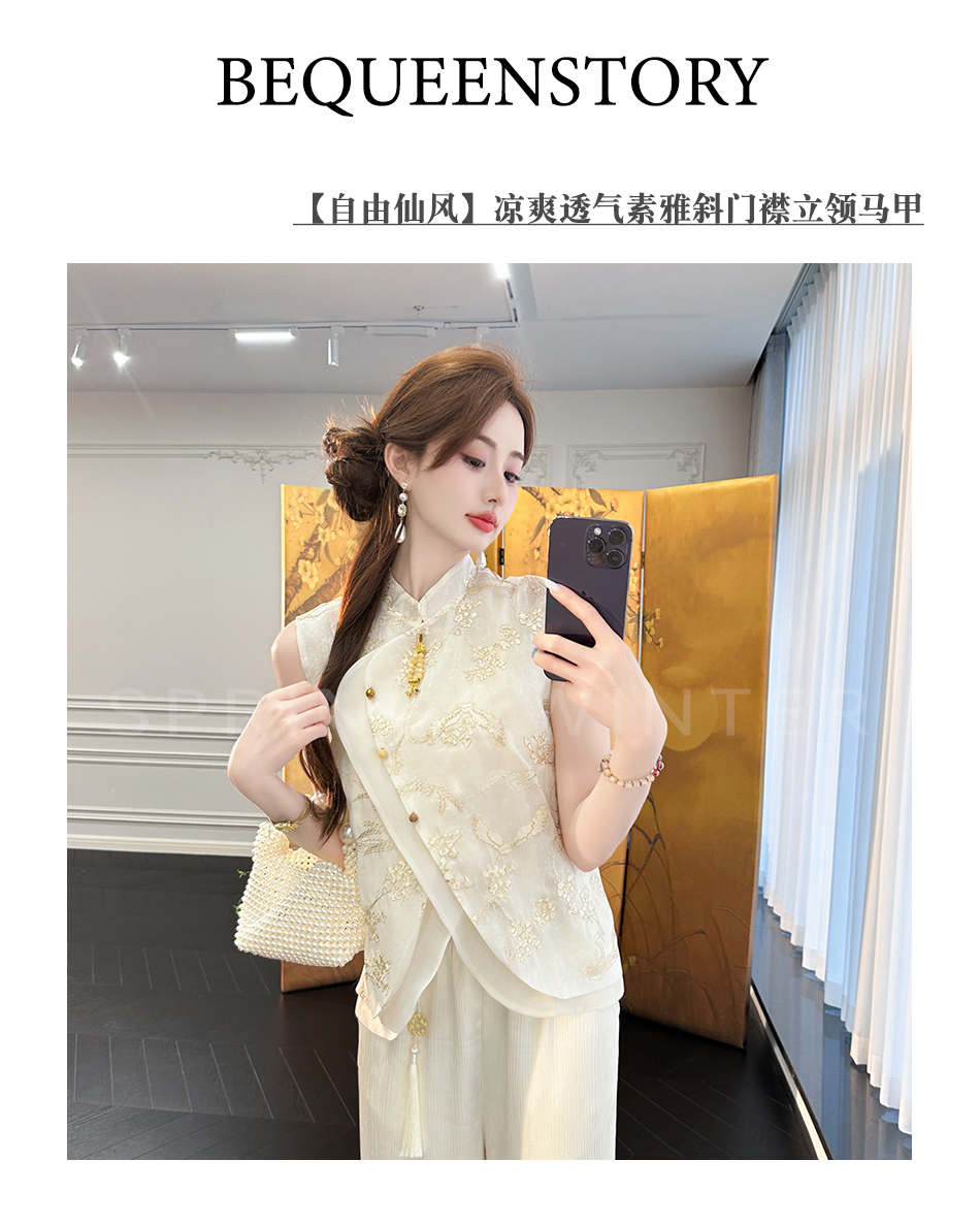 余潇潇【自由仙风】国风新中式凉爽透气素雅斜门襟立领马甲上衣
