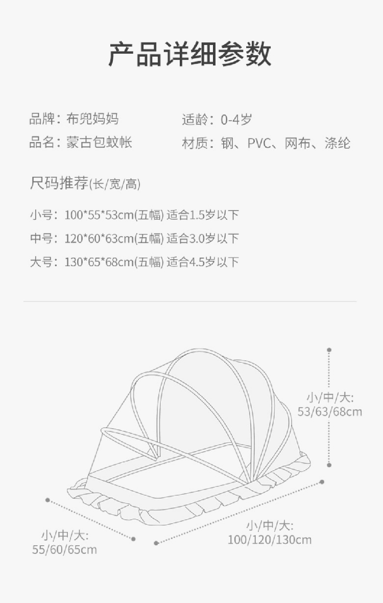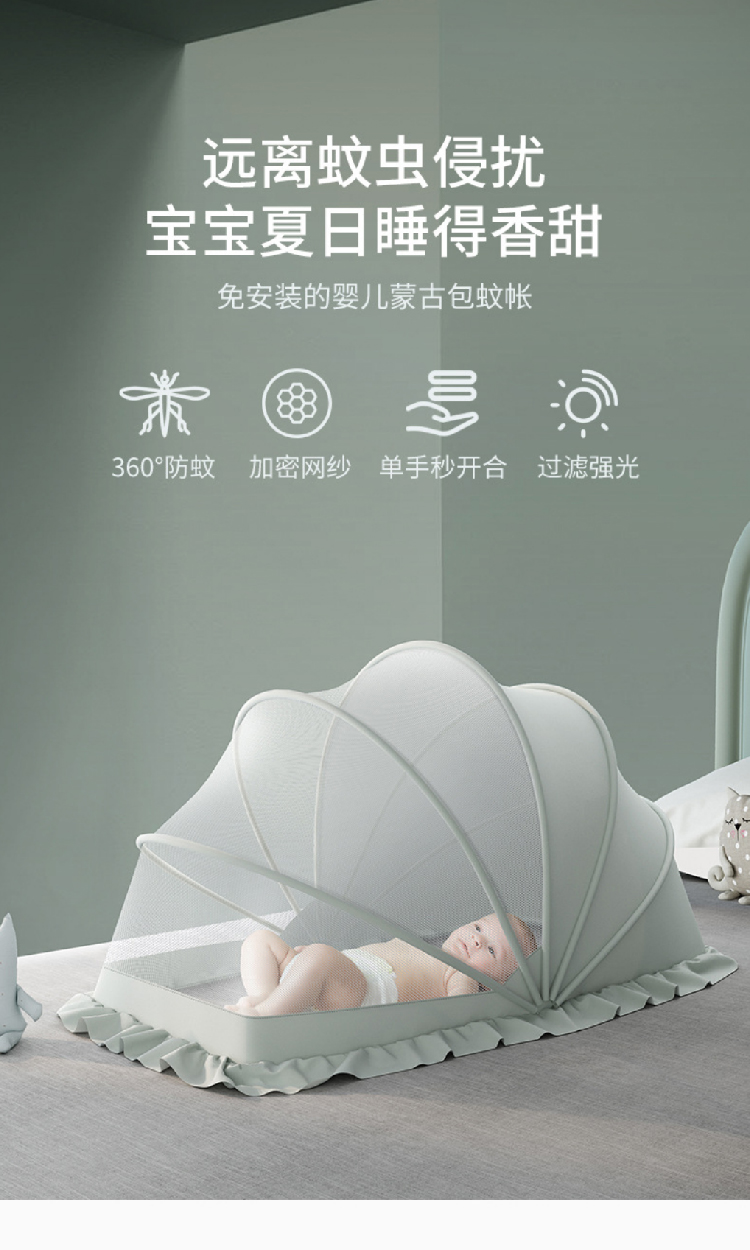 【0~4岁婴儿“无蚊”罩】全罩式遮光可折叠宝宝防蚊罩 小床通用便携蒙古包蚊帐