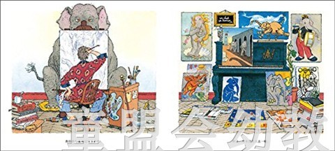 而当作者试着为他的宠物画上自画像时,我们哭笑不得的发现了一幅幅世界名画。《维纳斯的诞生》主角变成了一只故作娇羞状的大象;《吹笛少年》变成了《吹笛大象》;毕加索、塞尚、马蒂斯……全都成了这只宠物的新肖像画。而画家也突发奇想,画了许多种宠物‘猫’,不禁让人感慨这位作者天马行空的想象力。