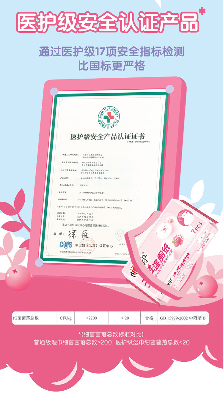 心相印女性杀菌卫生湿厕纸 7片/包