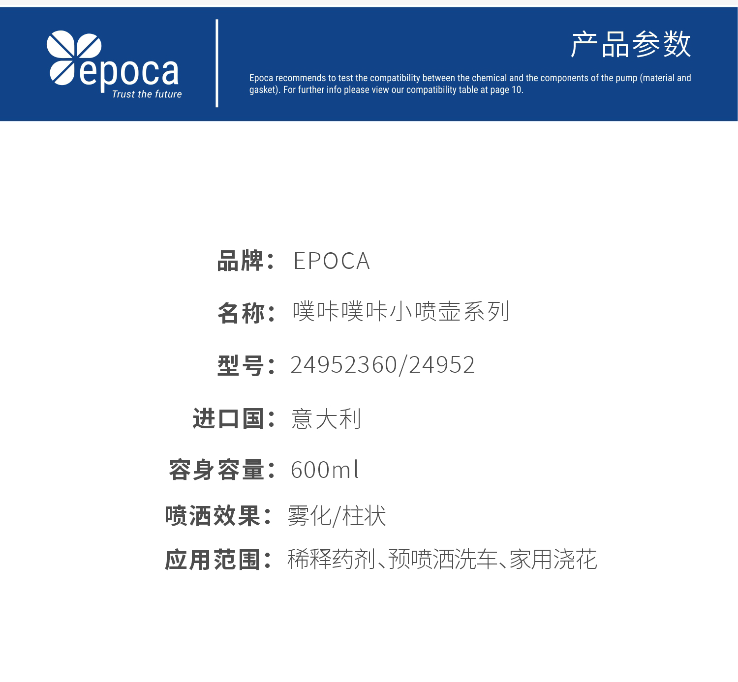 Epoca 意大利进口原装噗咔噗咔小喷壶药剂稀释壶600ml