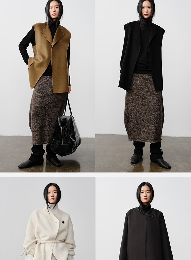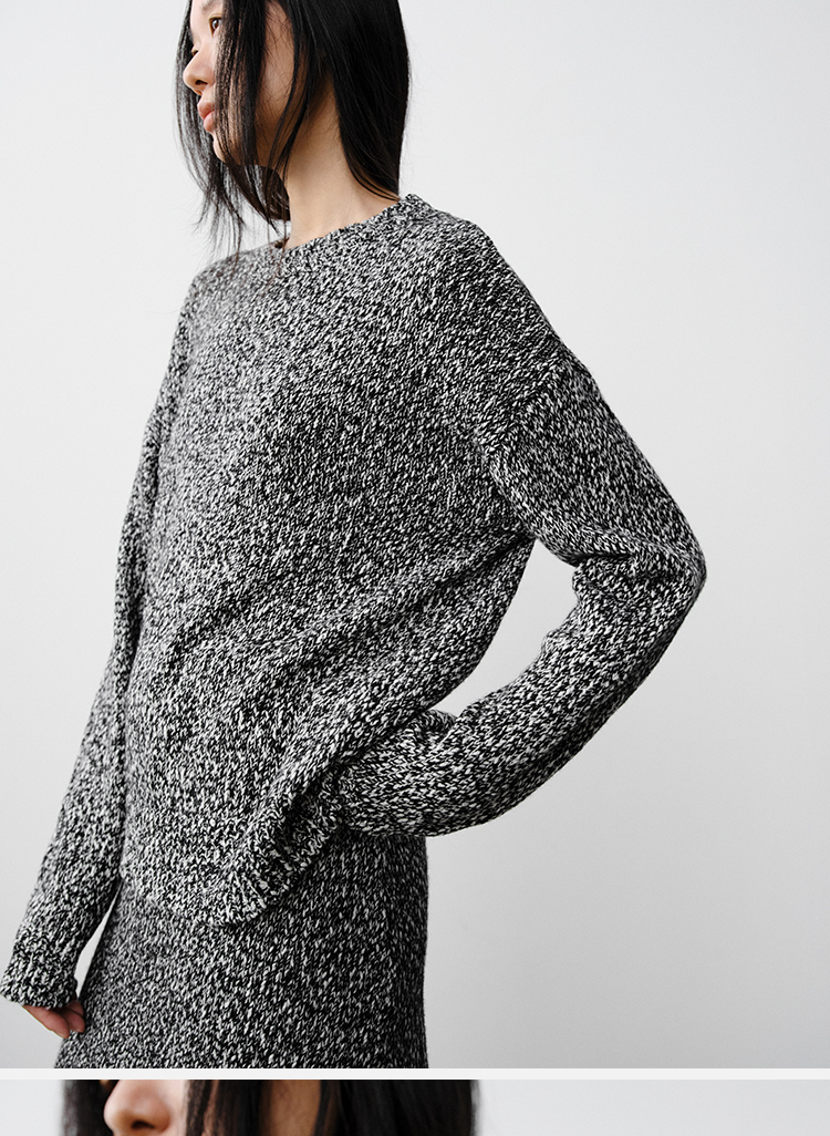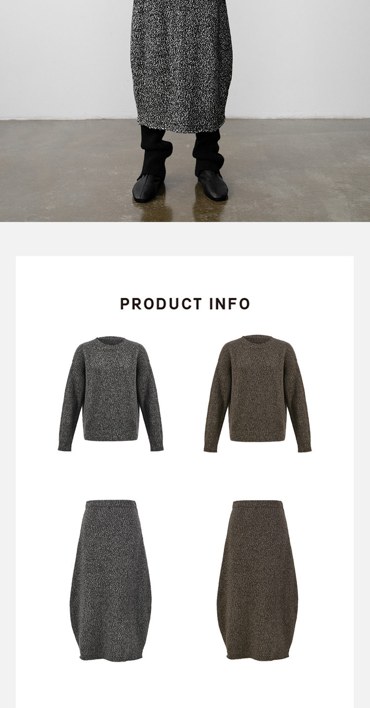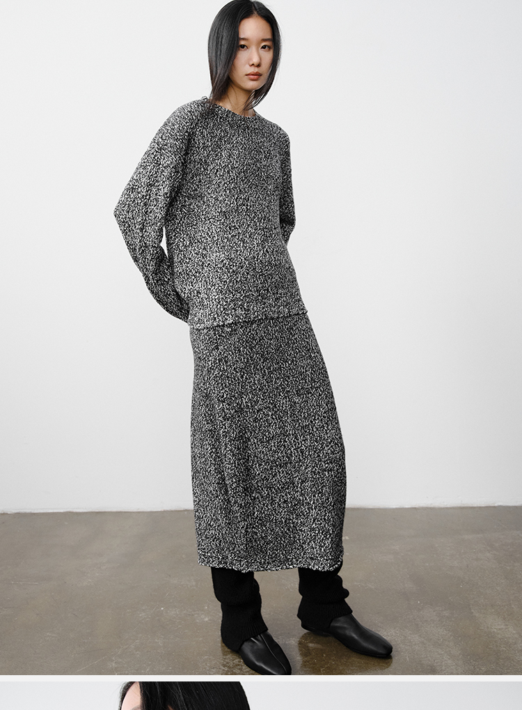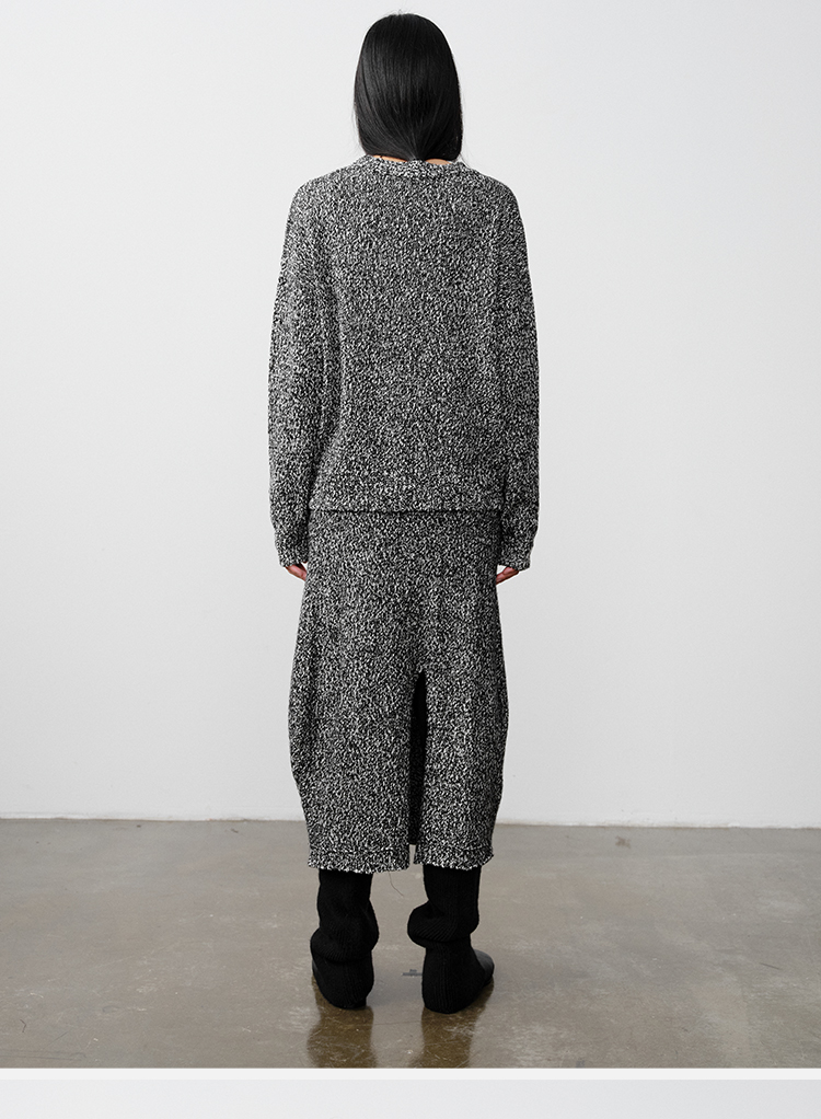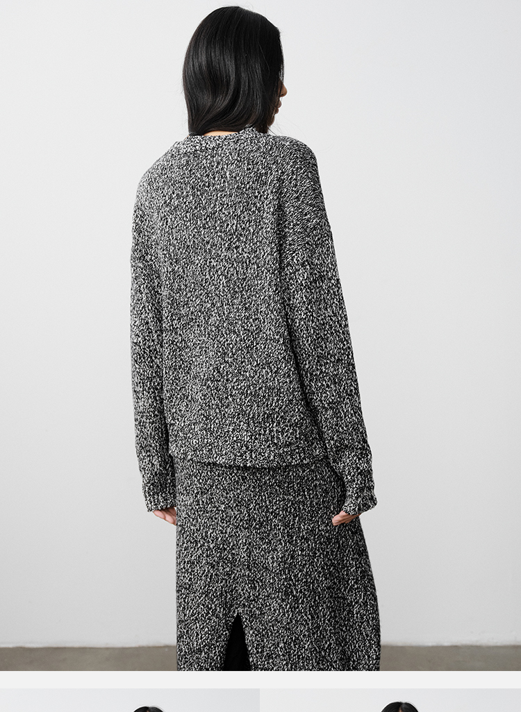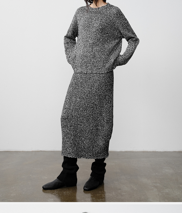 HIDEMI 美利奴羊毛芝麻花纱粗针慵懒极简圆领毛衣茧型半裙套装
