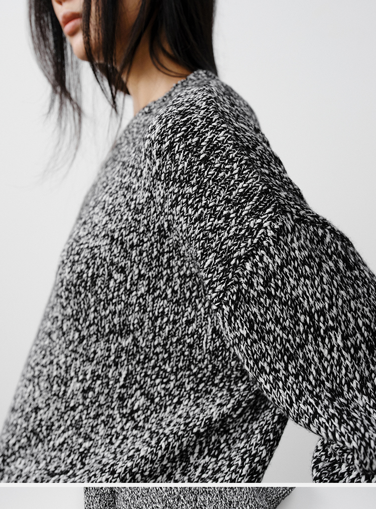 HIDEMI 圈圈羊驼毛粗针宽松毛衣 黑色/自然驼