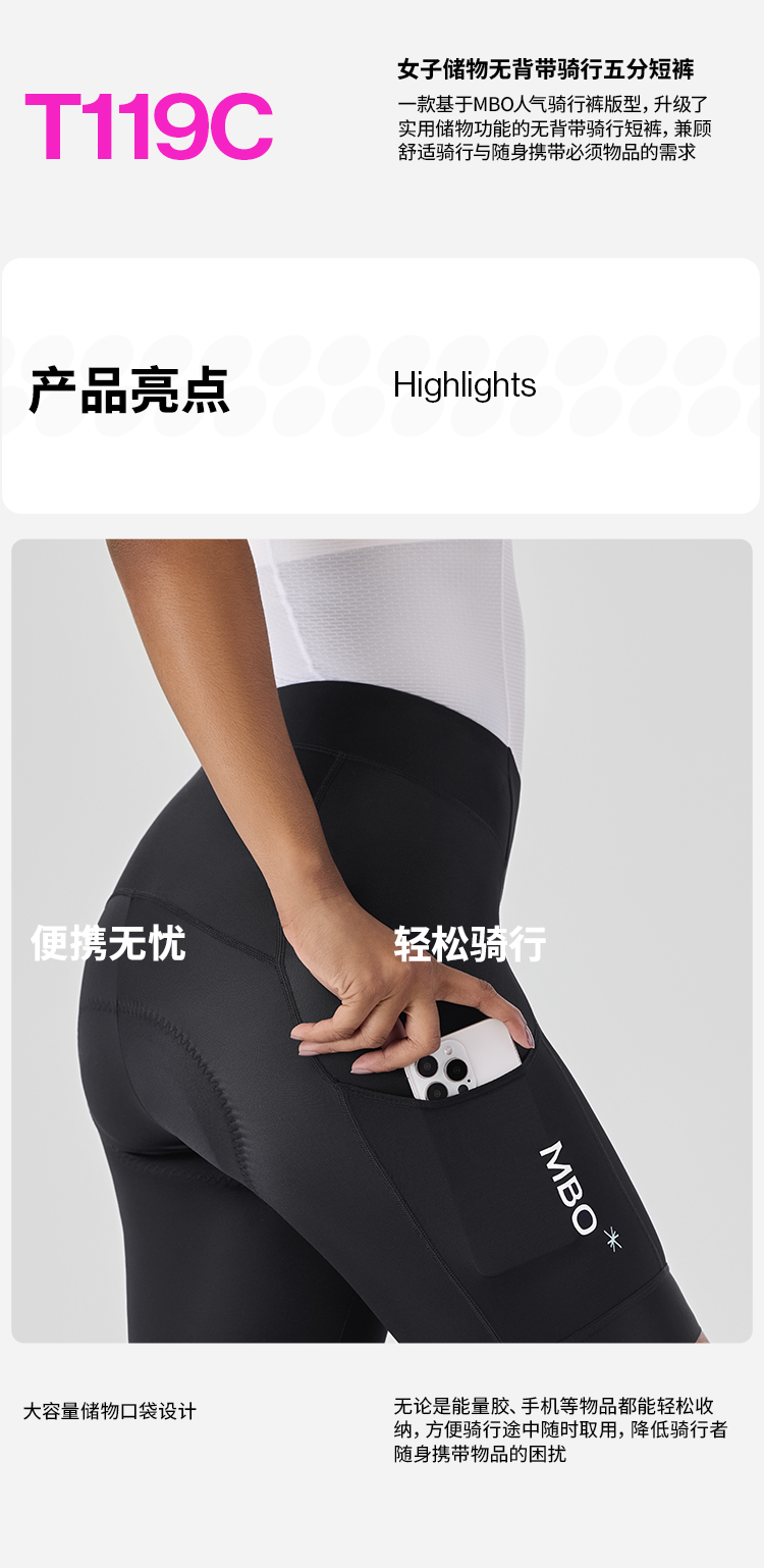 MBO女子便携无忧储物骑行短裤 春夏新款双箭头T119C -A 25年夏季新款 (经销商专拍链接,非经销商拍单不发货)