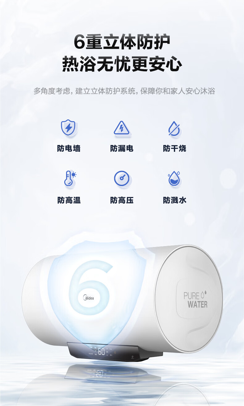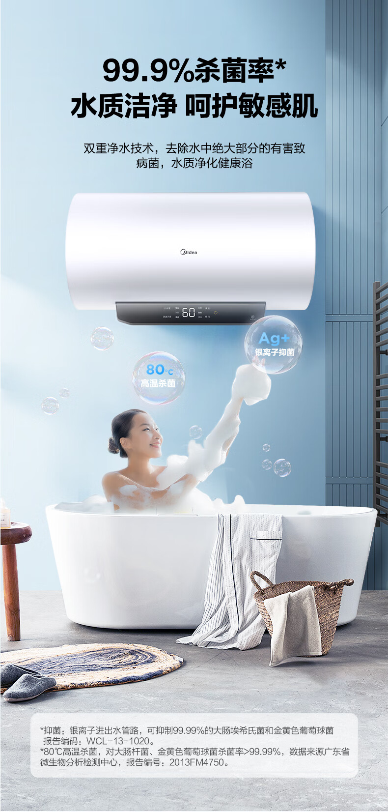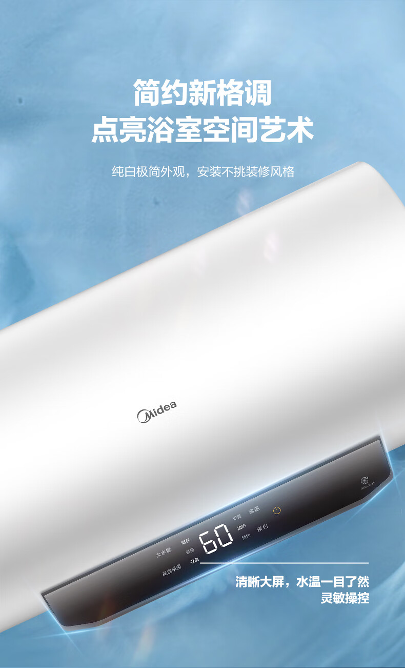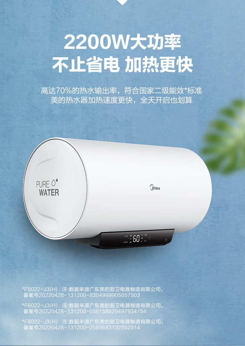 美的(Midea)80升电热水器 2200W速热 双重净水 6重立体防护 8年包修F8022-J3(H)