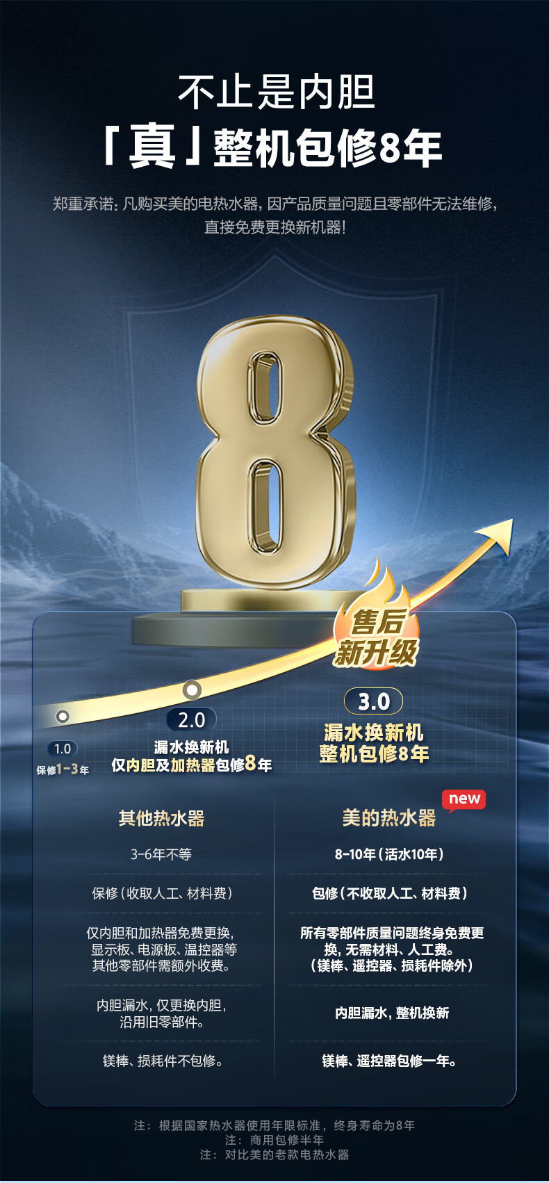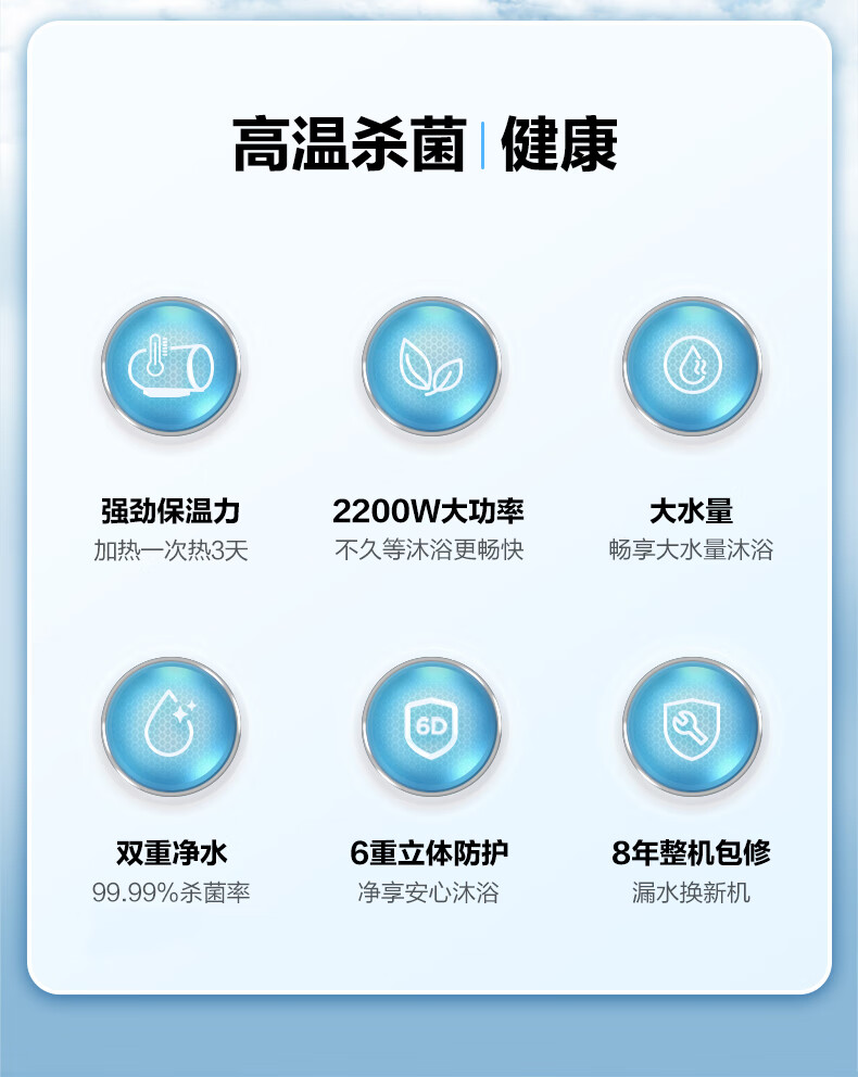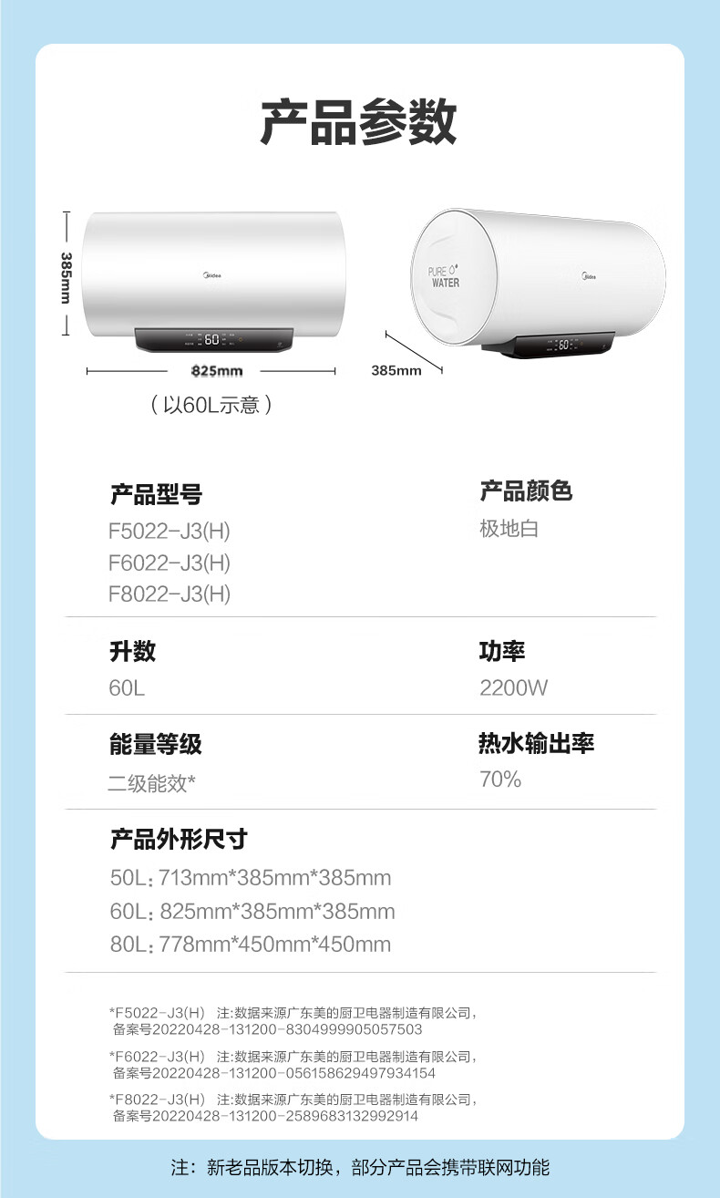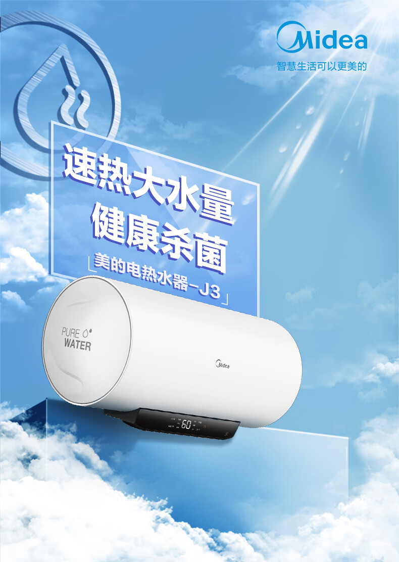 美的(Midea)80升电热水器 2200W速热 双重净水 6重立体防护 8年包修F8022-J3(H)