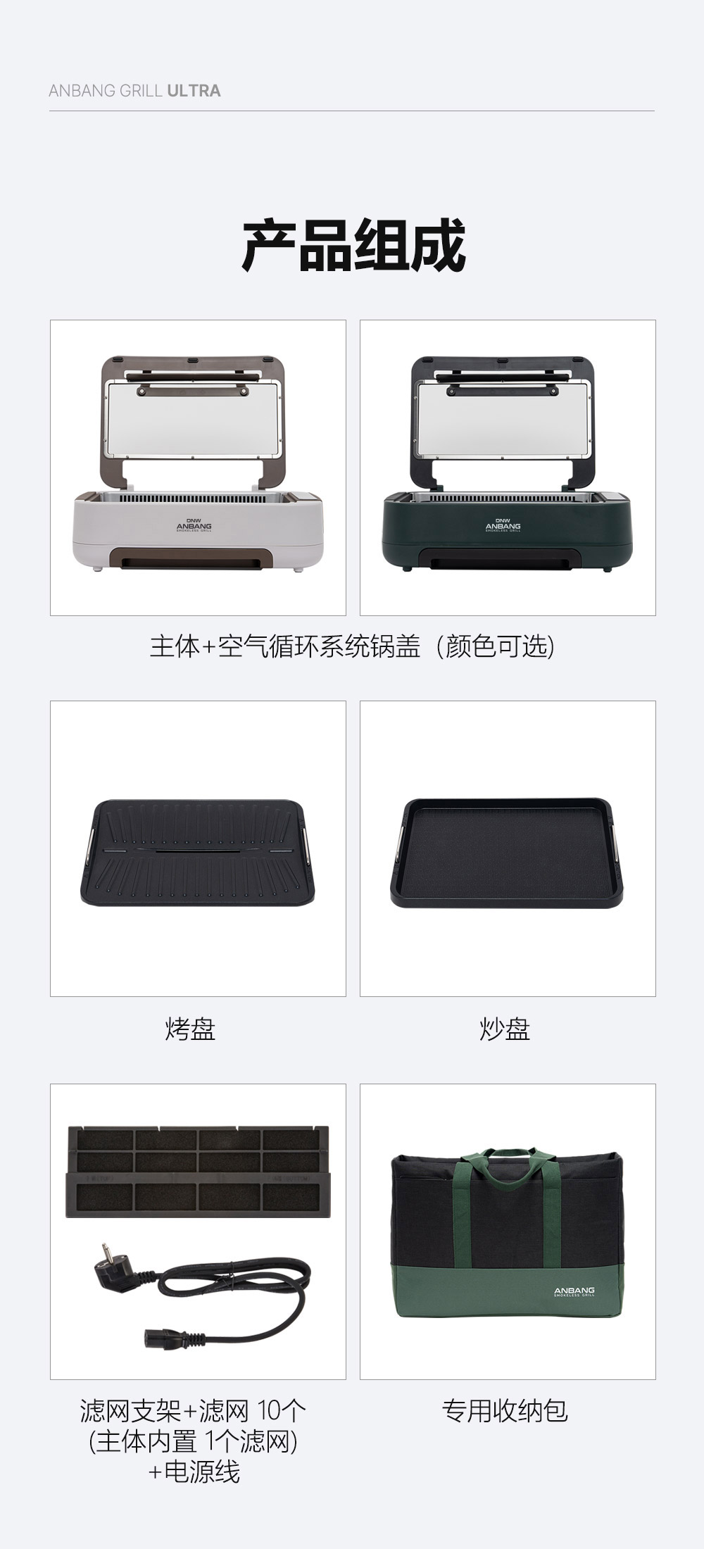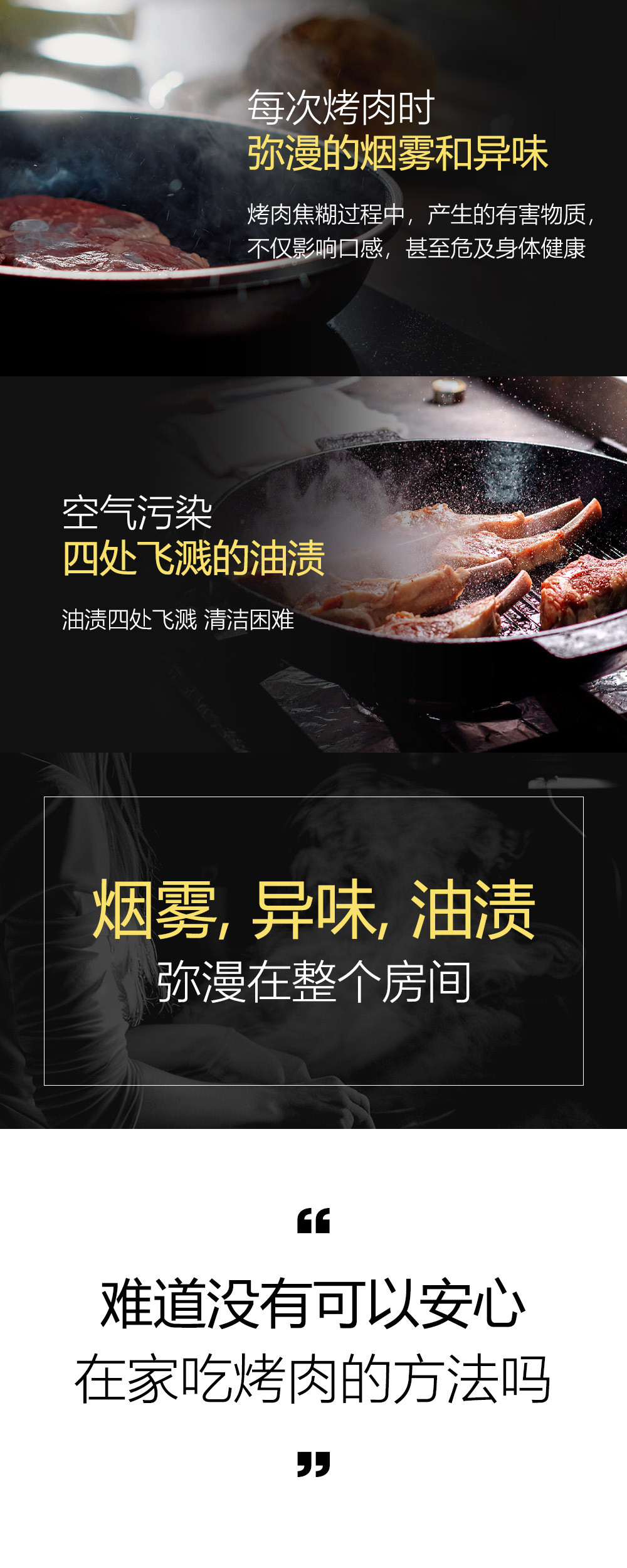 【尺寸】主体:510(W)x320(L)x190(H)mm/烤盘:385x239x28mm炒盘:385x239x28mm/空气滤网:330x105mm收纳包:510x160x360mm