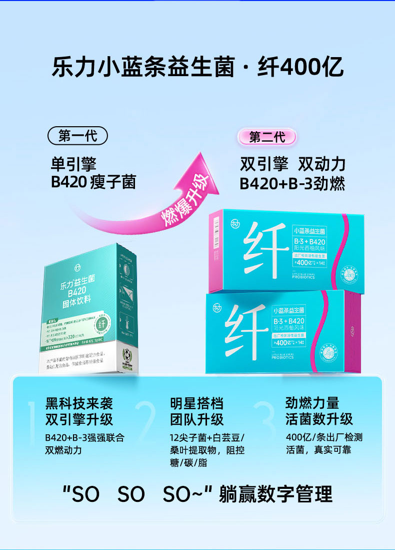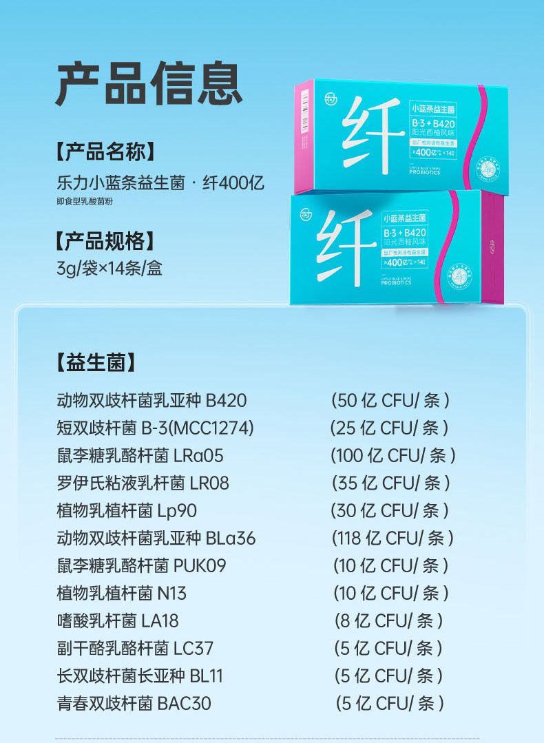 乐力益生菌纤400亿B420瘦子菌肠道健康好帮手20条