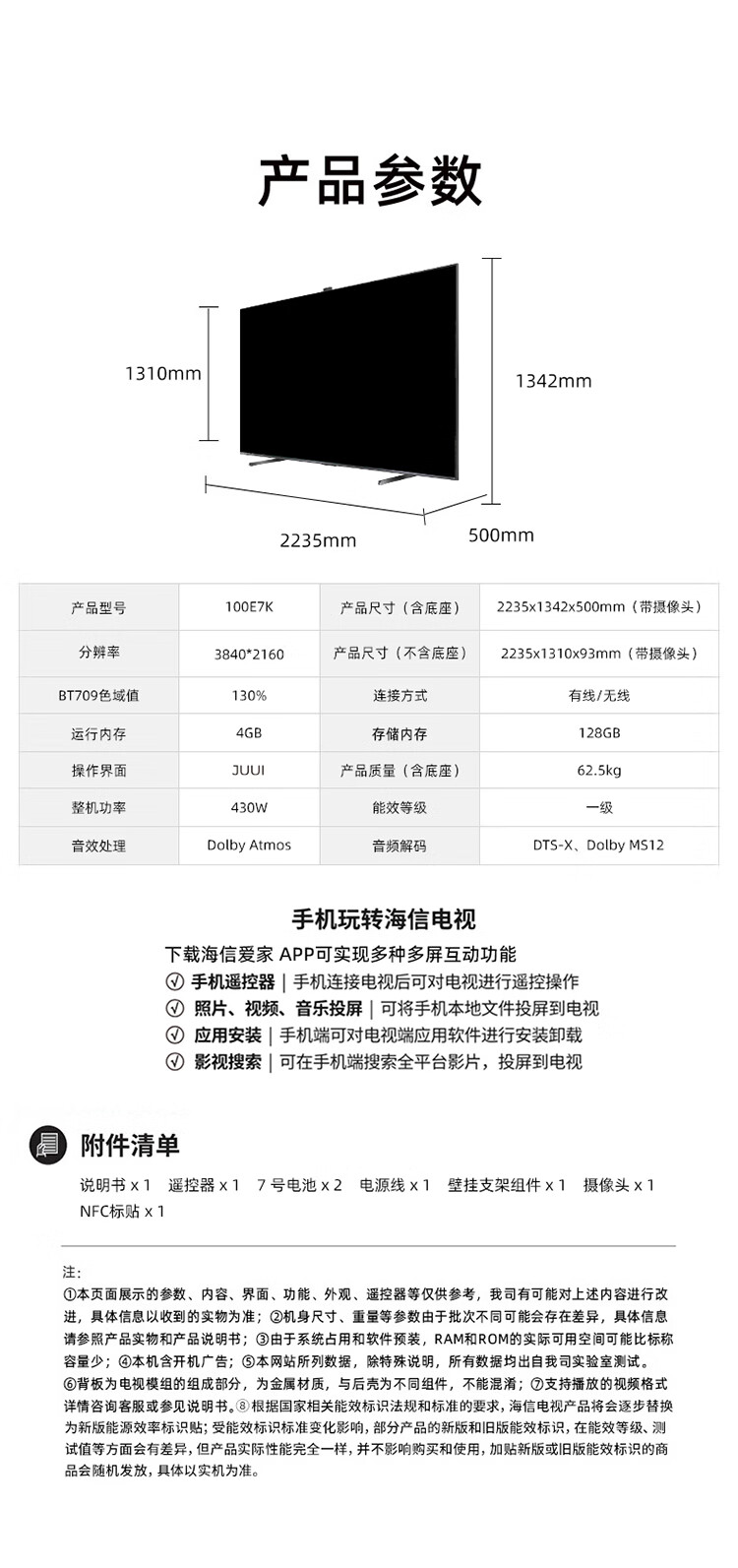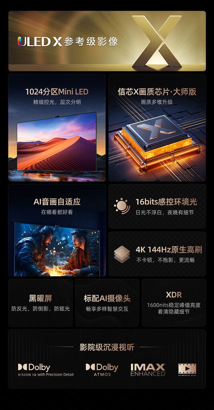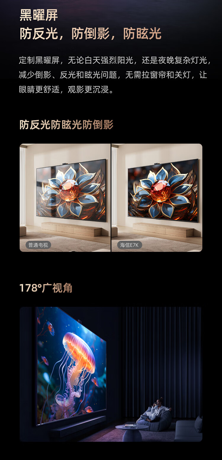 海信电视100E7K 100英寸 ULED X Mini LED 1024分区 XDR1600nits液晶智能平板电视机
