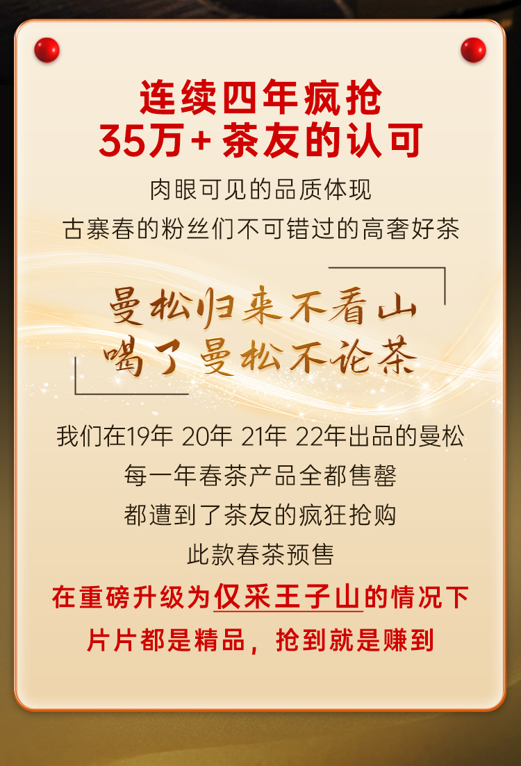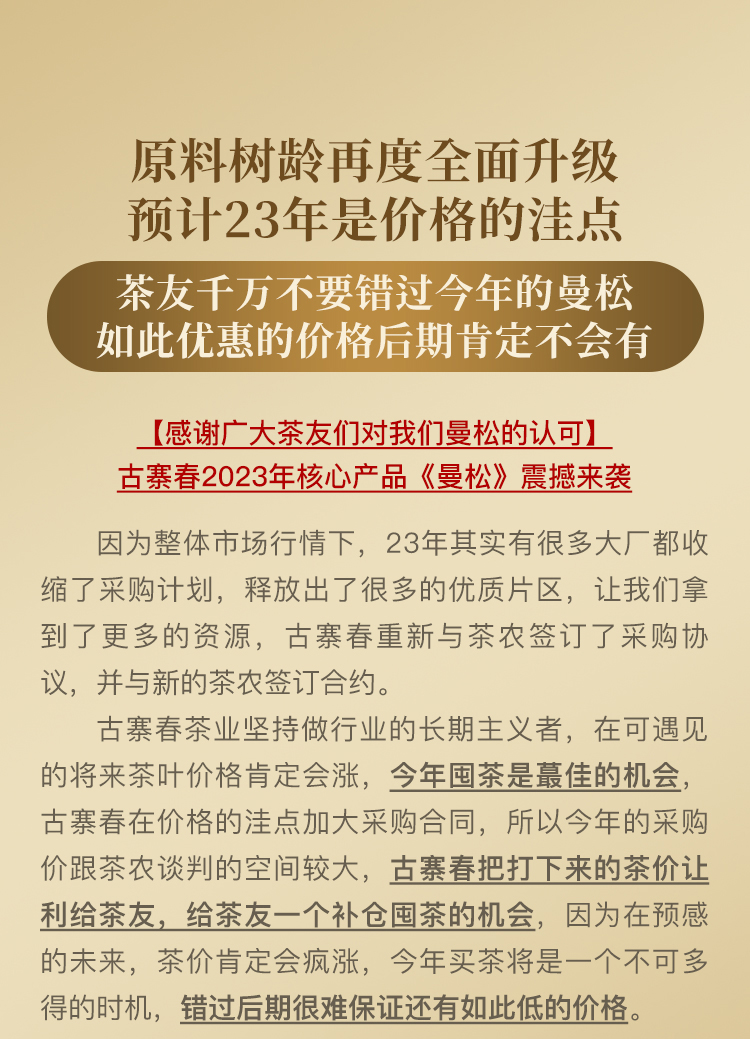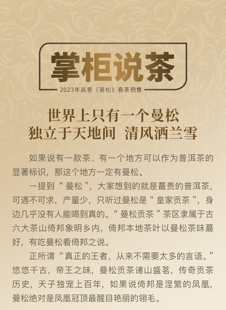 【曼松】2023年春茶重磅升级今年只采王子山片区1200年古树纯料古时贡茶片区