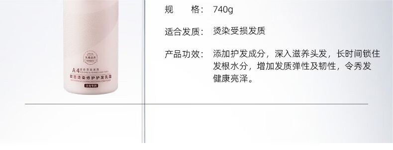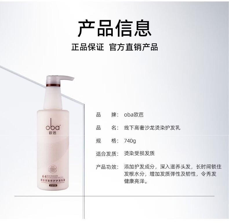 oba欧芭二代A4染发烫发滋养护发素柔顺固卷保湿补水740ml