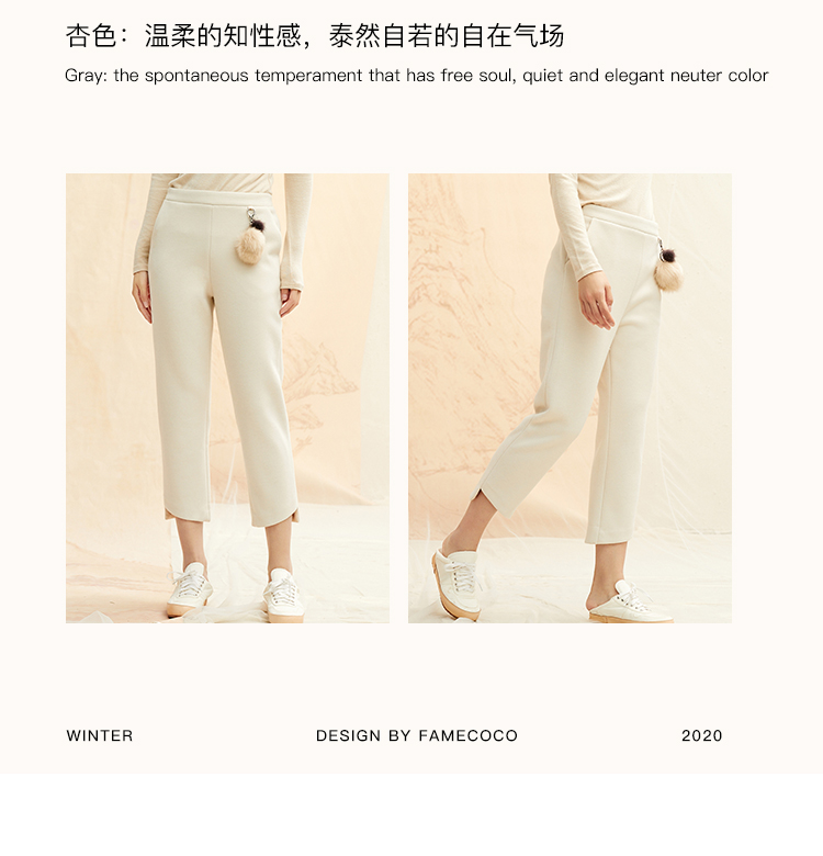 famecoco范可儿裤子女秋冬显瘦百搭休闲直筒裤F198GA001