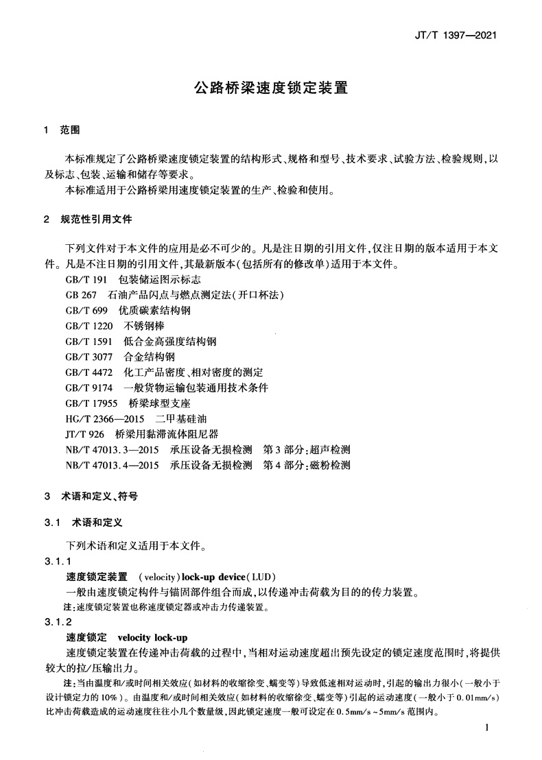 书名:公路桥梁速度锁定装置(JT/T 1397—2021)