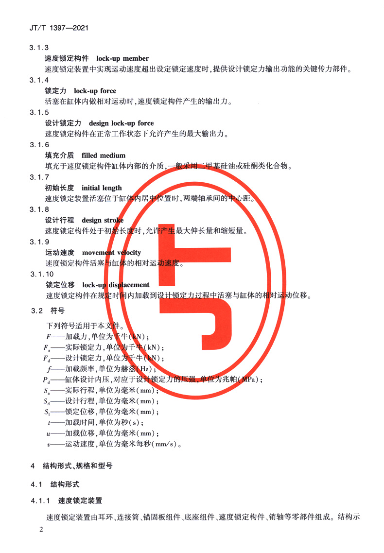 公路桥梁速度锁定装置(JT/T 1397—2021)