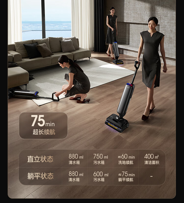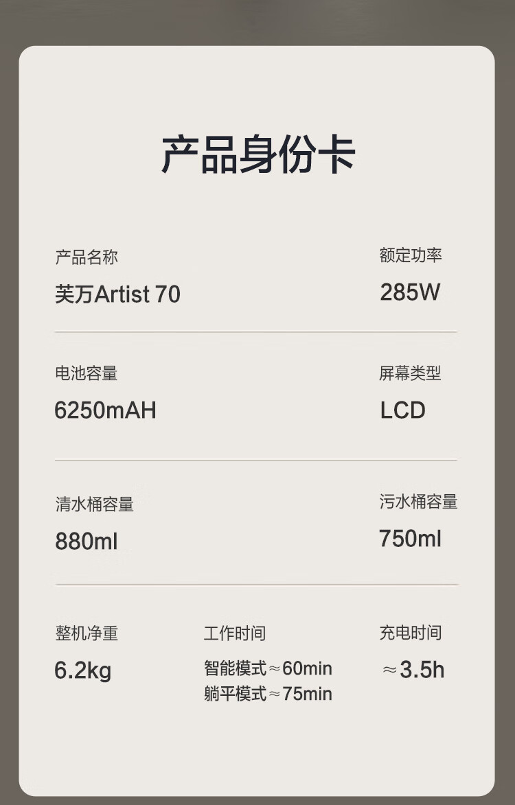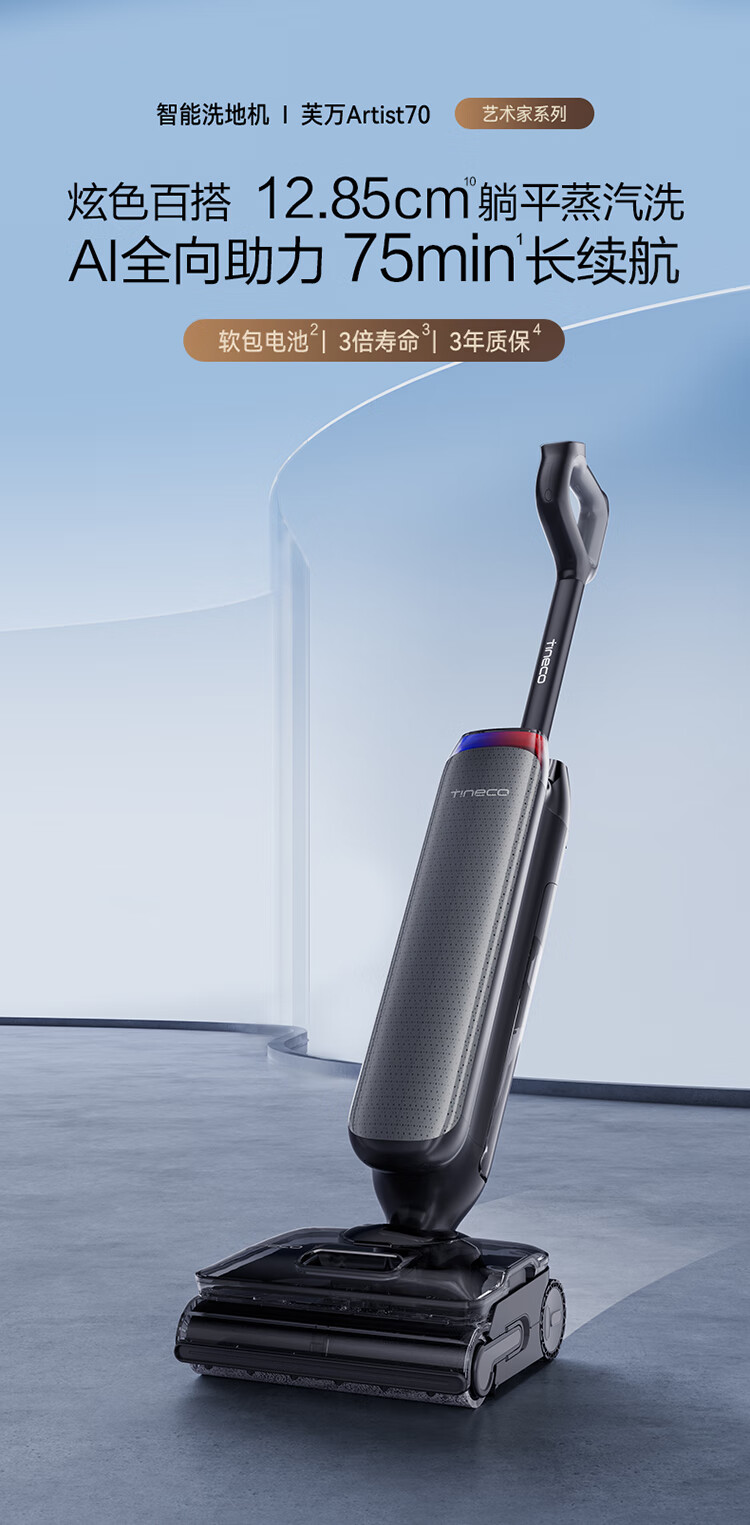 添可芙万Artist70艺术家AI助力【75分钟长续航 躺平蒸汽洗 0缠毛】洗地机自动清洗吸拖一体拖地机器人