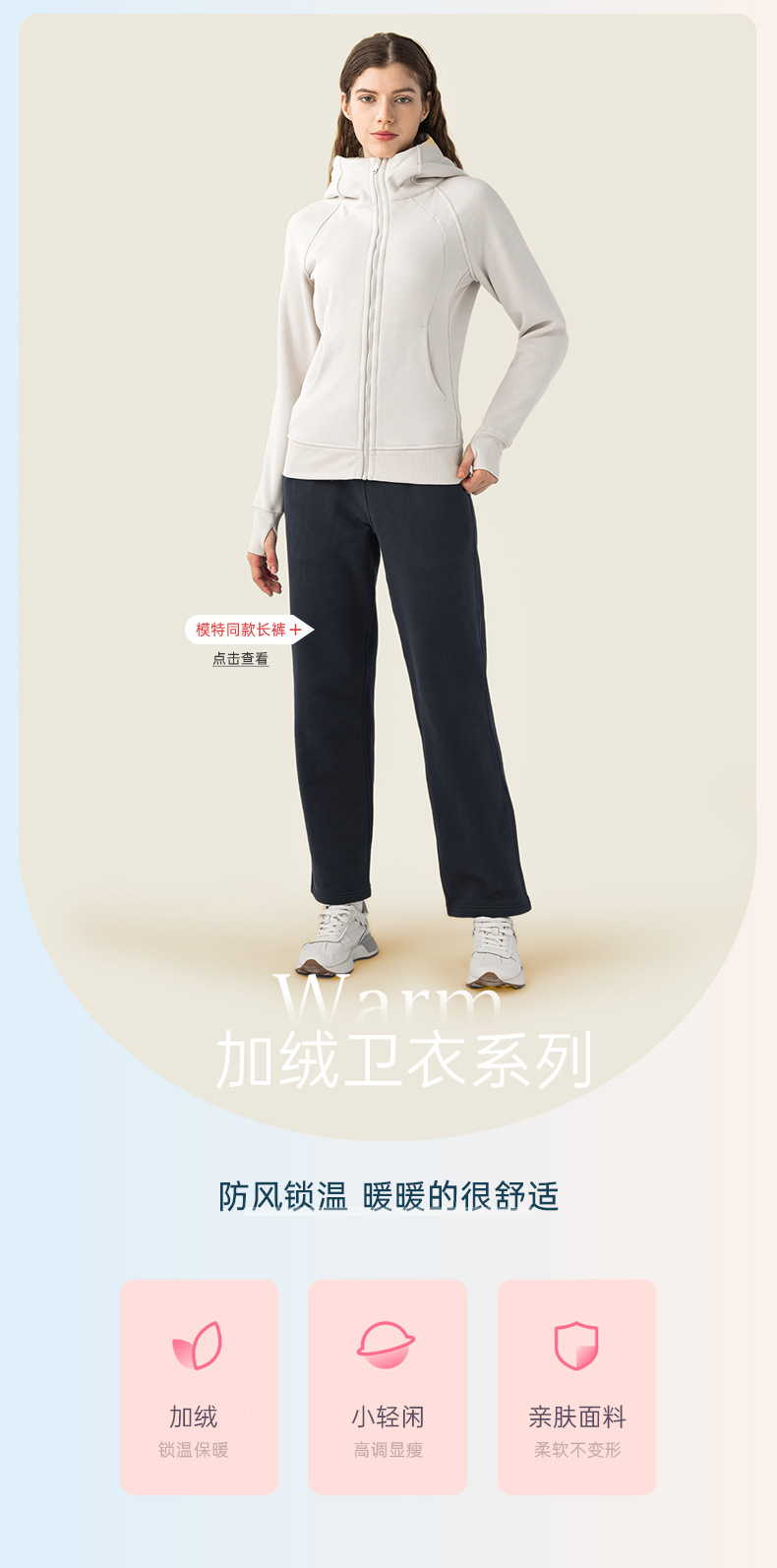 【SCA连帽运动外套!防风锁温】新款加厚保暖卫衣女,户外休闲外穿瑜伽训练健身夹克,亲肤面料 适用多场景 一体连帽 虎口指套