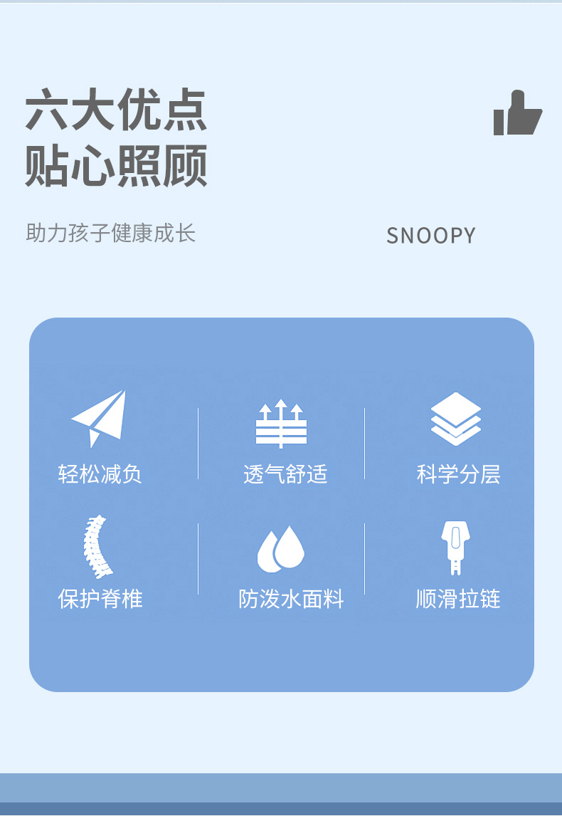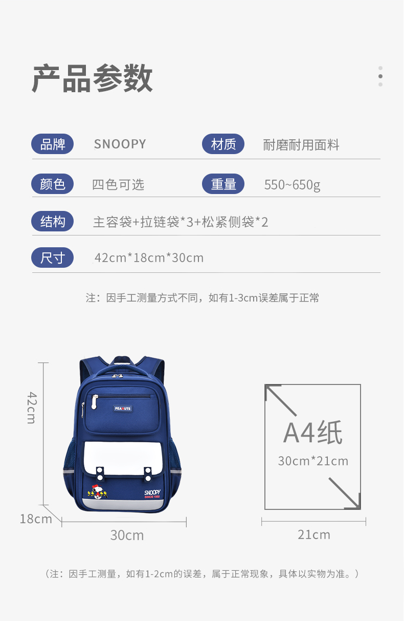 史努比儿童书包小学生男童三到六年级大容量护脊减负女孩双肩包