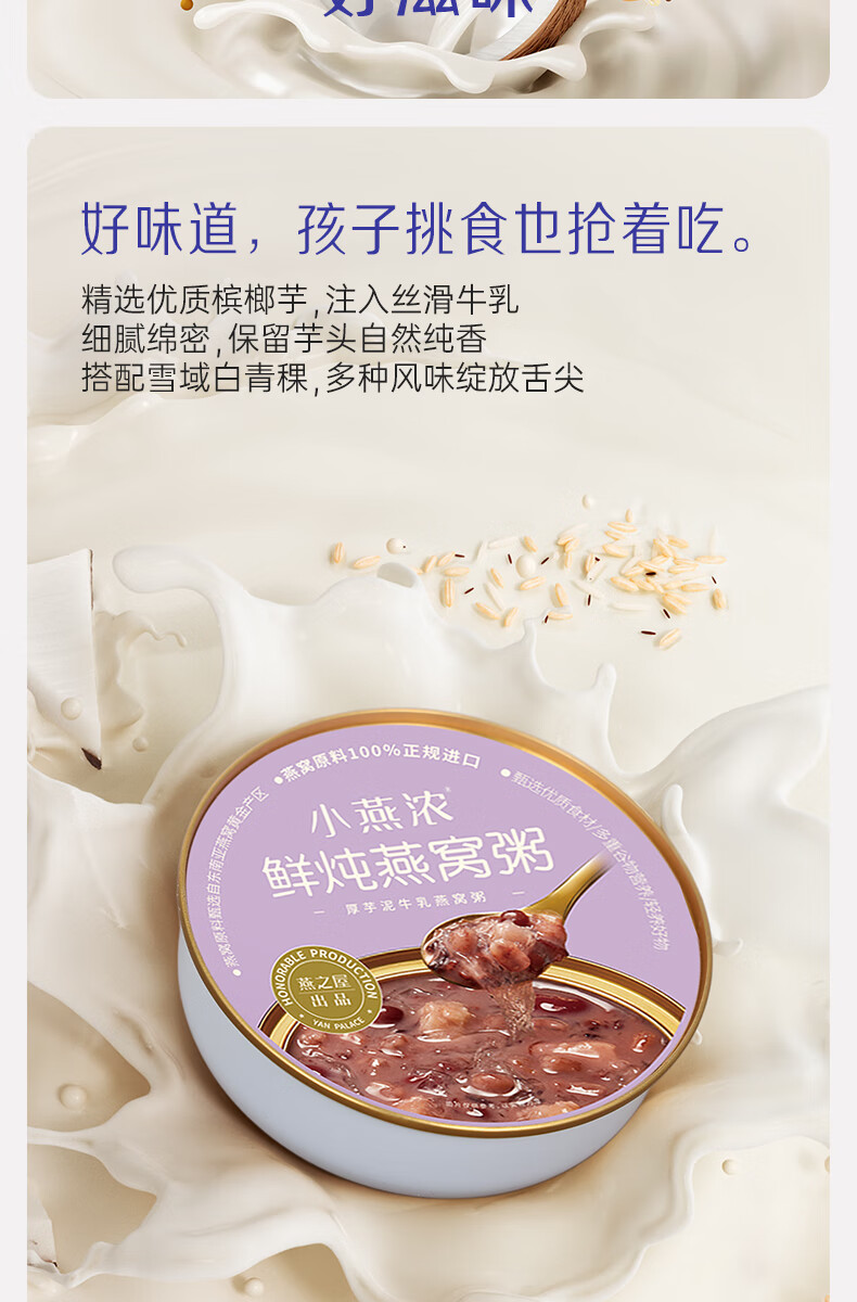 【小燕浓200g*6碗,厚芋泥牛乳,绵密滋养】小燕浓 鲜炖燕窝粥 厚芋泥牛乳燕窝粥200g*6碗