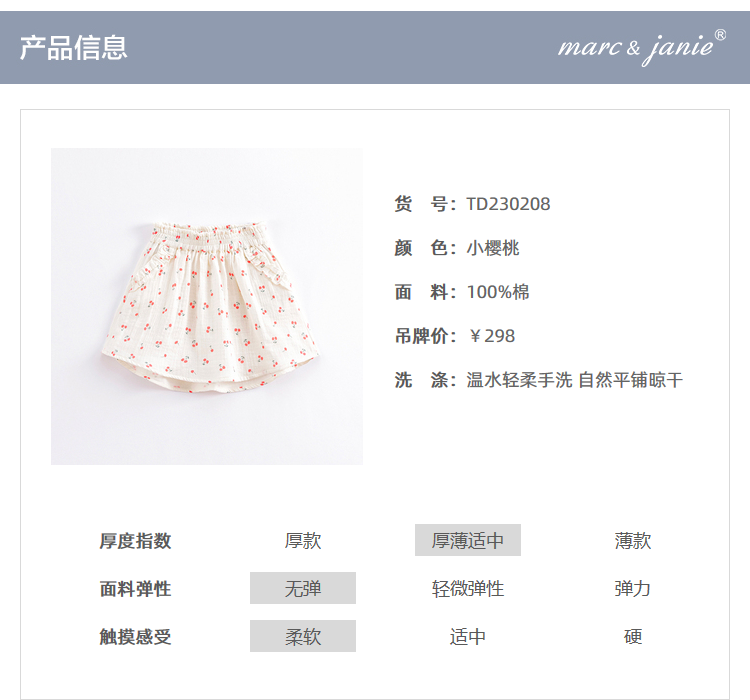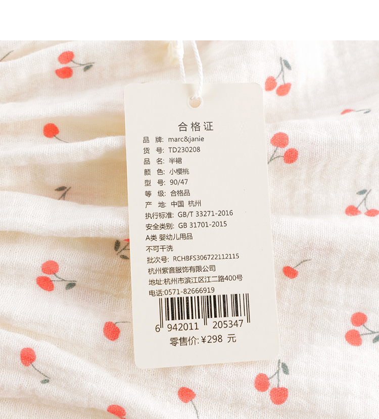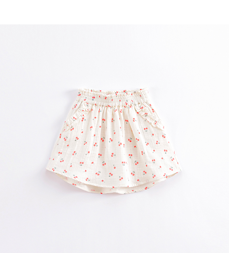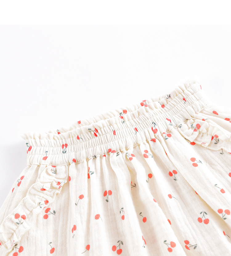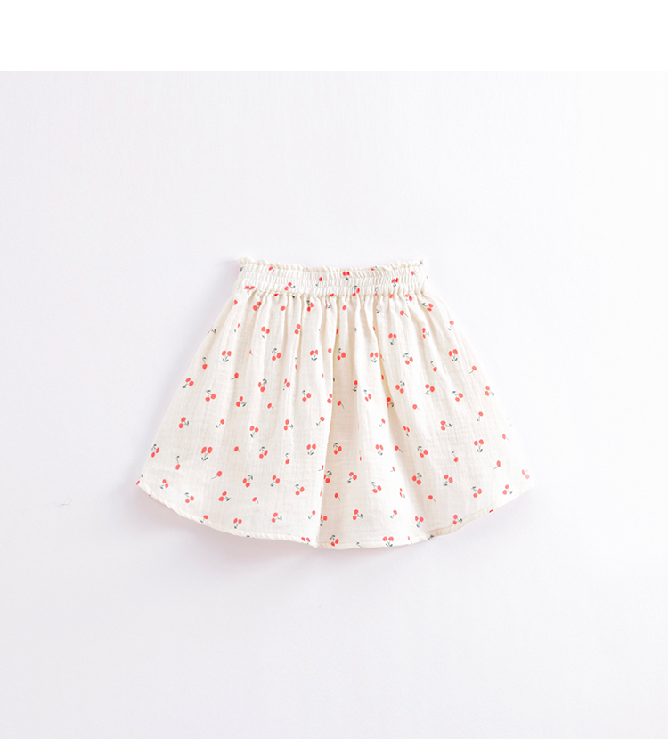 马克珍妮春夏装新款 女童田园风樱桃满印半身裙230208