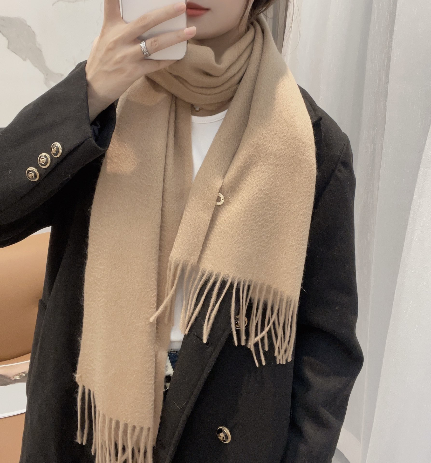 秋冬特惠💰460 诺悠翩雅围巾 经典“水波纹”素色羊绒围巾 手感软糯.经“颤栗”处理,面料更有光泽,也增加了色彩的鲜艳度.LP一直以严格选用最高品质的羊绒为基准.没有对比就没有伤害.Buerberry和Hermes都甘拜下风.更是采用“水波纹”高级纹路 更是让围巾奢华到不行.尺寸:30:180cm
