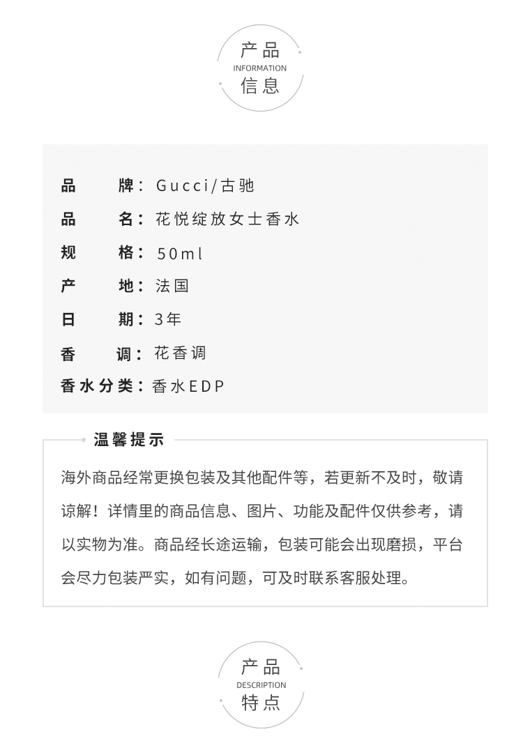 GUCCI古驰bloom花悦绽放女士香水50ml 清新持久迷人花香晚香玉 茉莉香型 生日礼物送女友 节日送礼【CDF】