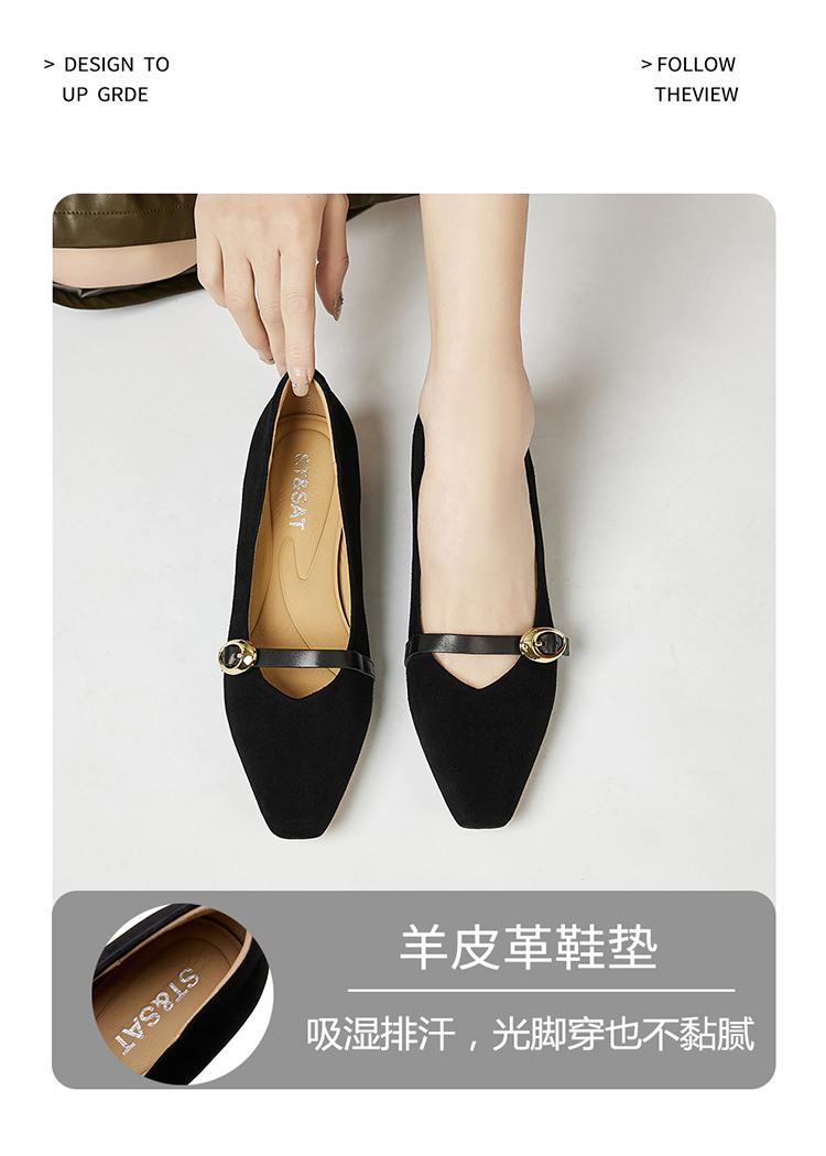 【星空系列】星期六26春新款甜美水钻方头平底单鞋SSE1111211