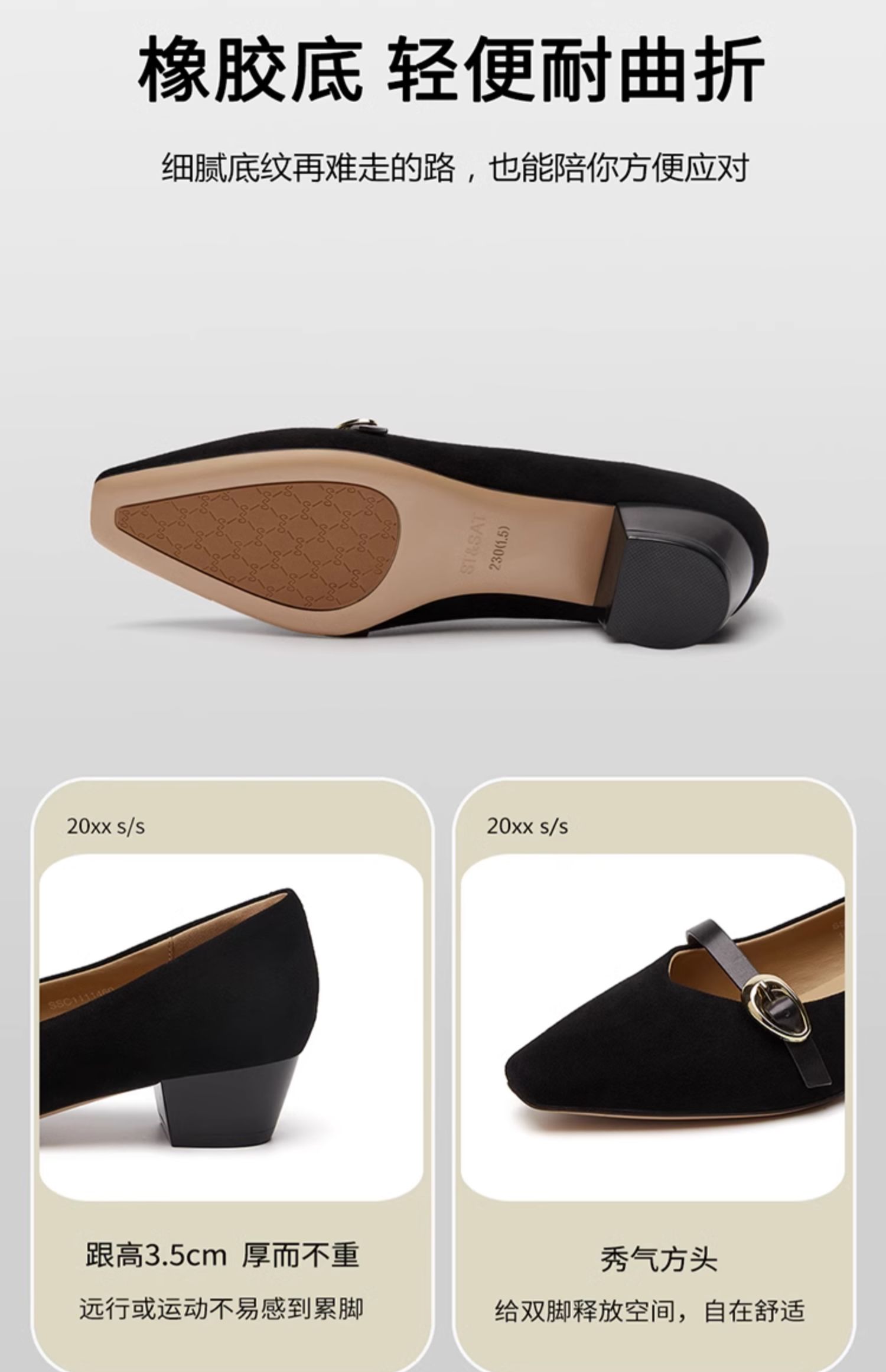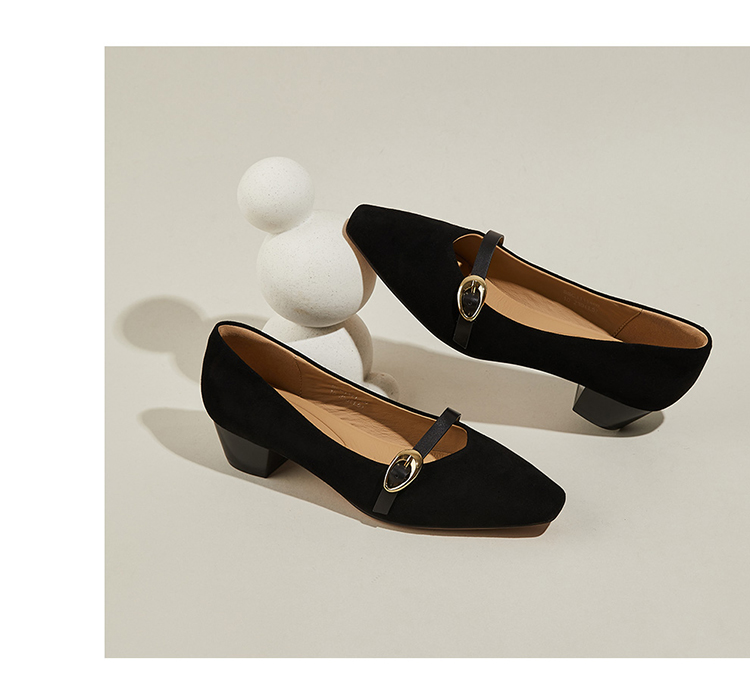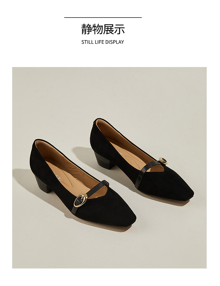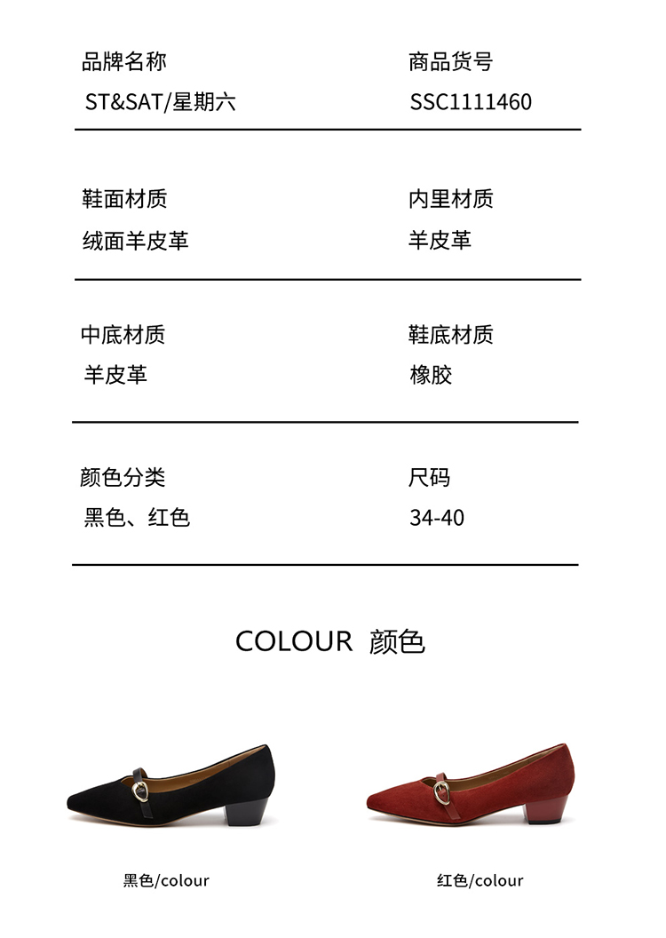 星期六简约方头一字带粗跟玛丽珍鞋SSC1111460