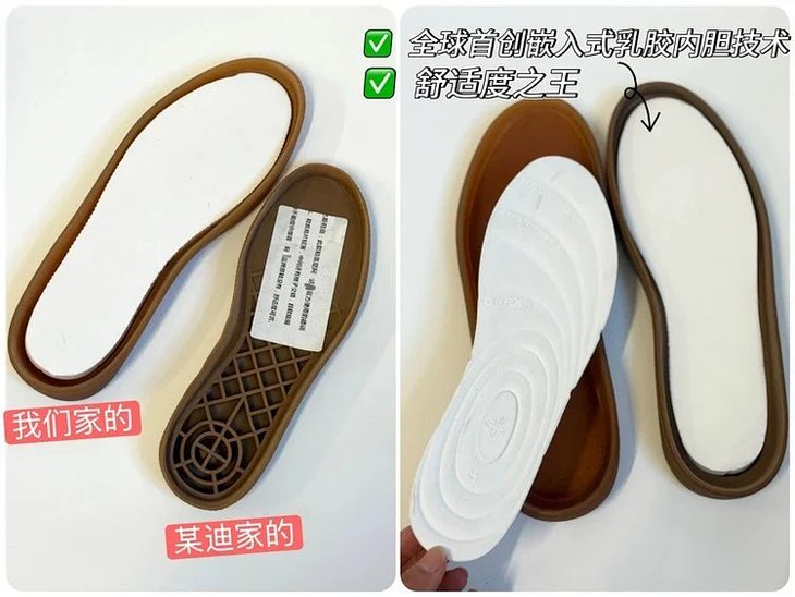 乳胶不单是鞋垫,而是直接嵌入鞋底结构