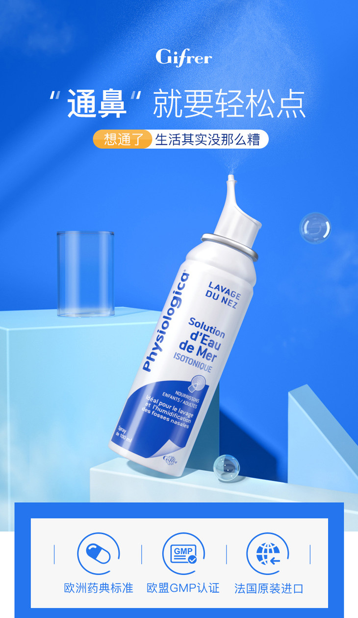 【孕婴可用,鼻腔畅快呼吸】Gifrer肌肤蕾法国生理海盐水补水鼻腔清洗器孕妇幼儿园宝宝儿童中小学生通鼻塞润鼻子干燥止痒鼻炎冲洗喷雾剂
