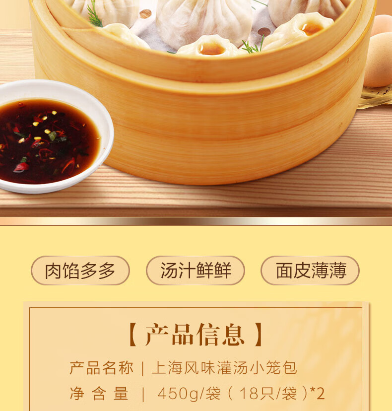 三全 上海灌汤小笼包450g*2 家庭装(商)